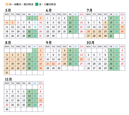 期間:2026年5月1日(金)~11月28日(土)の特定日