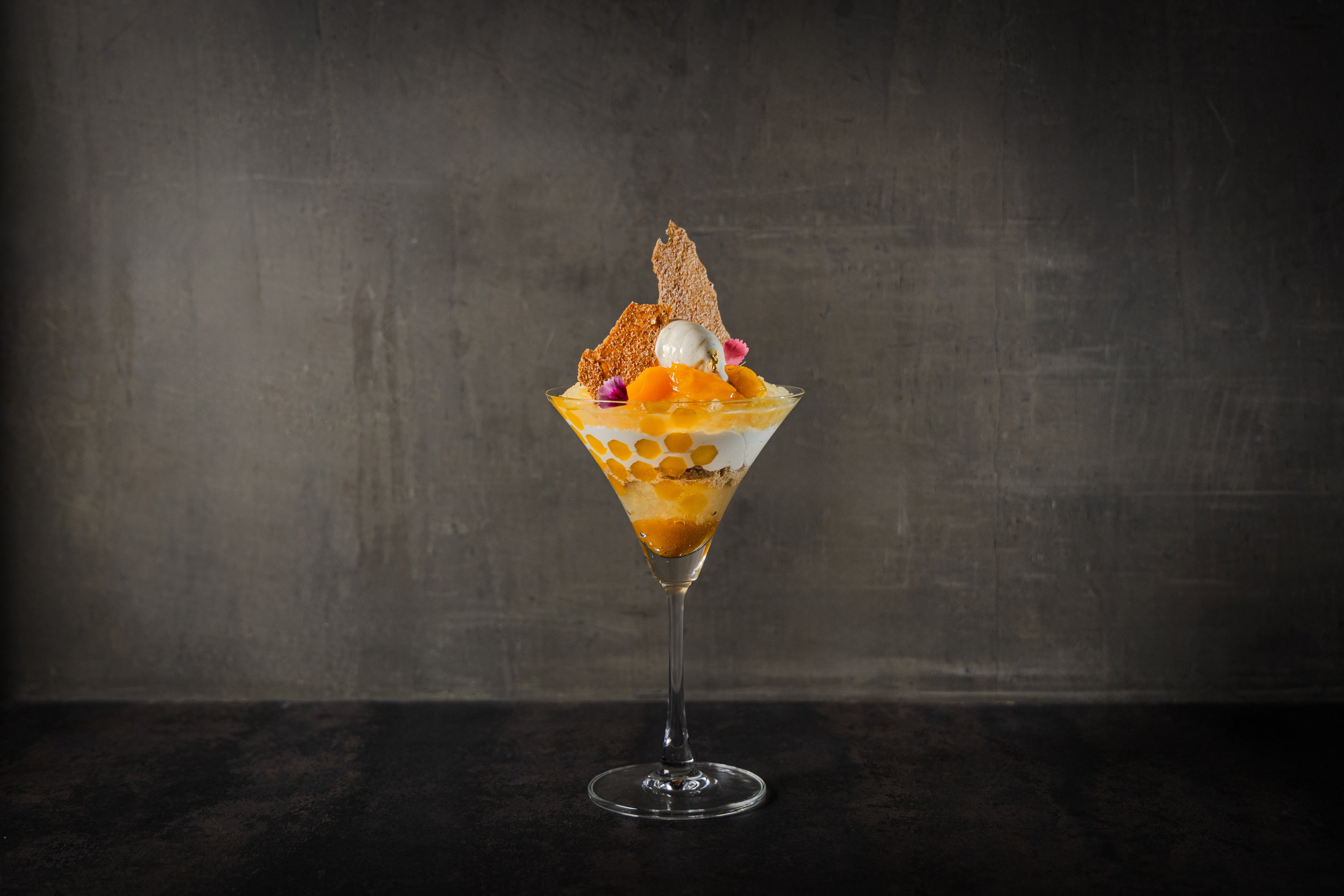 ギリシャヨーグルトとマンゴーを合わせ、春の山の花の香りを集めたはちみつの風味が心地よいノンアルコールカクテル。柔らかい乳の味わいにフルーティな余韻をお楽しみください。