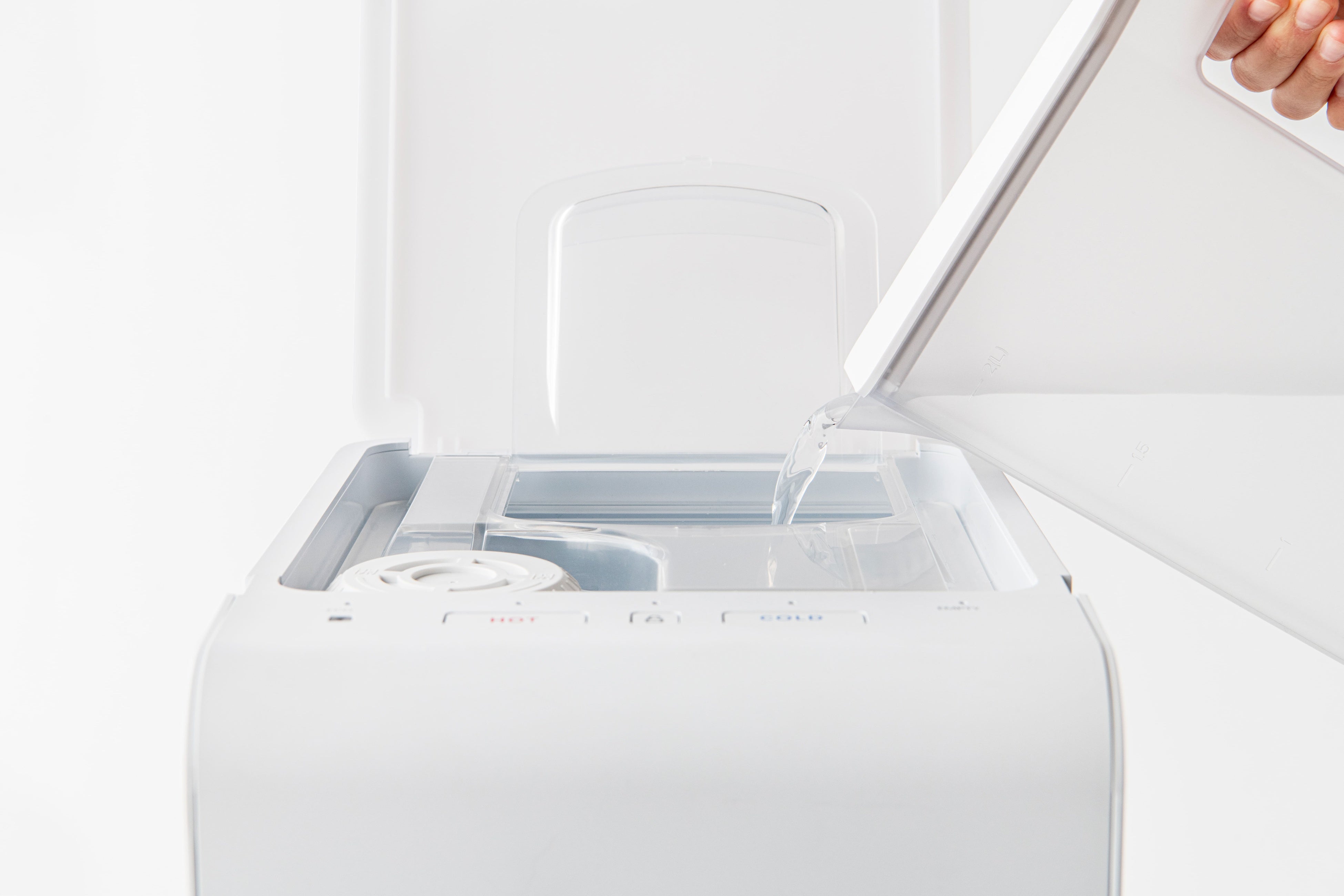 給水タンクはほこり等の異物が入りにくい二重構造になっており、またUV殺菌機能搭載で、冷水タンク内を自動でUV殺菌するので、衛生的に使用することが可能です。