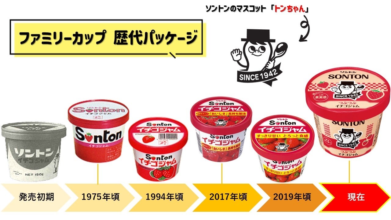 1960年に発売を開始した紙カップジャム・クリームの「ファミリーカップ」は、2025年10月に発売65周年を迎えました。これからも、こだわりを守りながら進化し続け、ソントンらしさで、朝の笑顔に寄り添います。