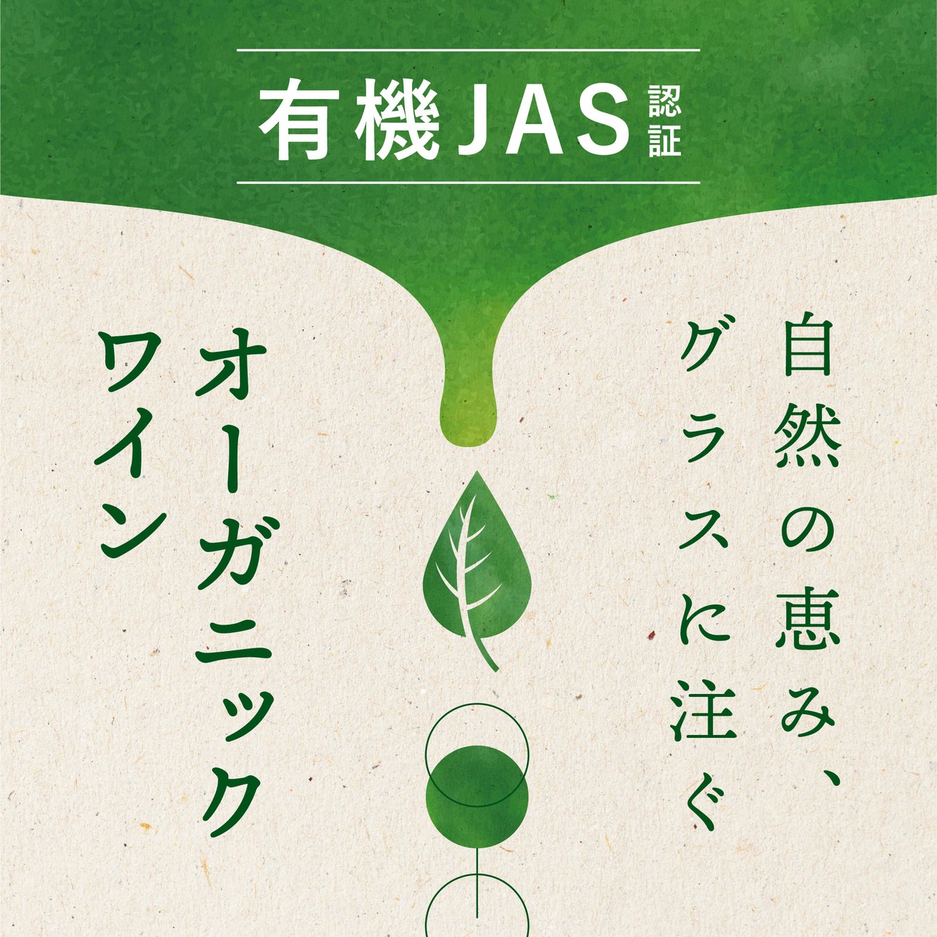 デザインにおいては、そのコンセプトを視覚的に表現するため、葉のモチーフを雫に見立て、自然そのものがワインとなってグラスに注がれる様子を、シンプルで視認性の高いビジュアルとして表現しました。
