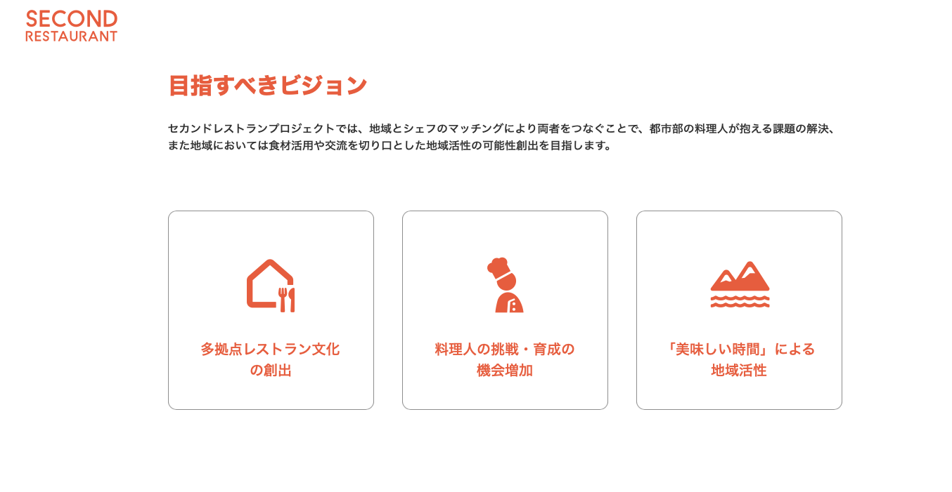 Second Restaurantは、料理人と地域の距離を縮め、日本各地の食文化を豊かにする「多拠点レストラン」という、これからの時代の新しい飲食店のあり方を提案します。
