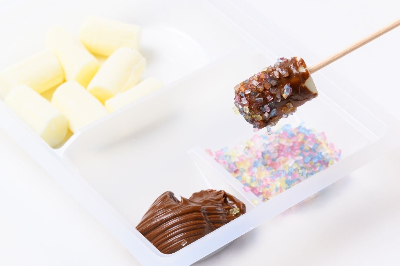 屋台で人気のチョコバナナのようなお菓子が作れる、2ステップで超かんたんな手作りお菓子。