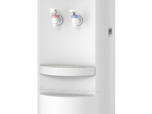 アクア8(アクアエイト)の蛇口(フォーセット)はレバー式を採用し、誰でも使いやすい設計となっています。温水側にはチャイルドロック機能※を搭載しており、小さなお子様がいるご家庭でも安心してご使用いただけます。また、電子制御式ではないため、停電時でも蛇口から取水が可能です。※停電時は温水・冷水機能は停止します。