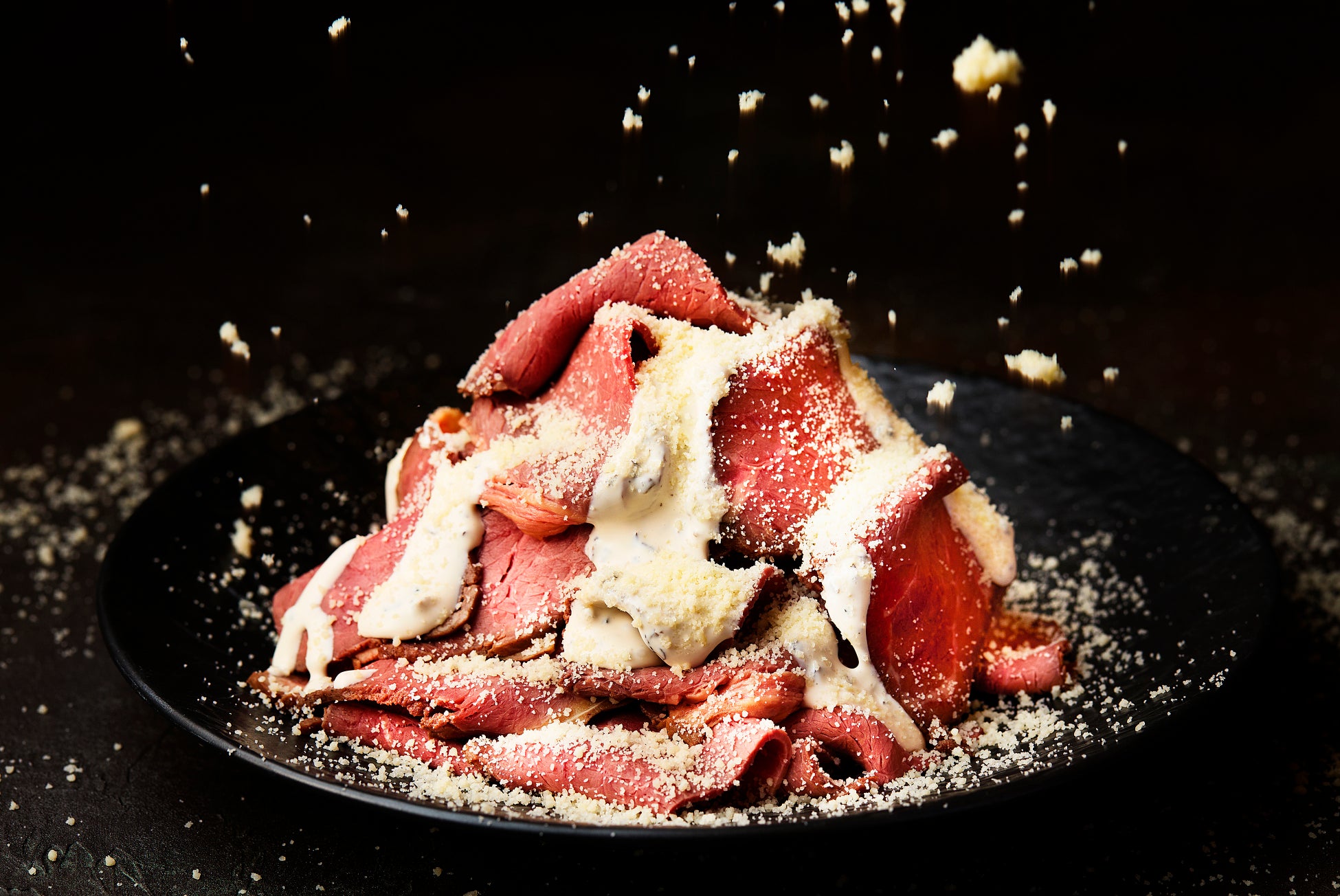 • 降り積もるチーズと禁断トリュフマヨのローストビーフスライス