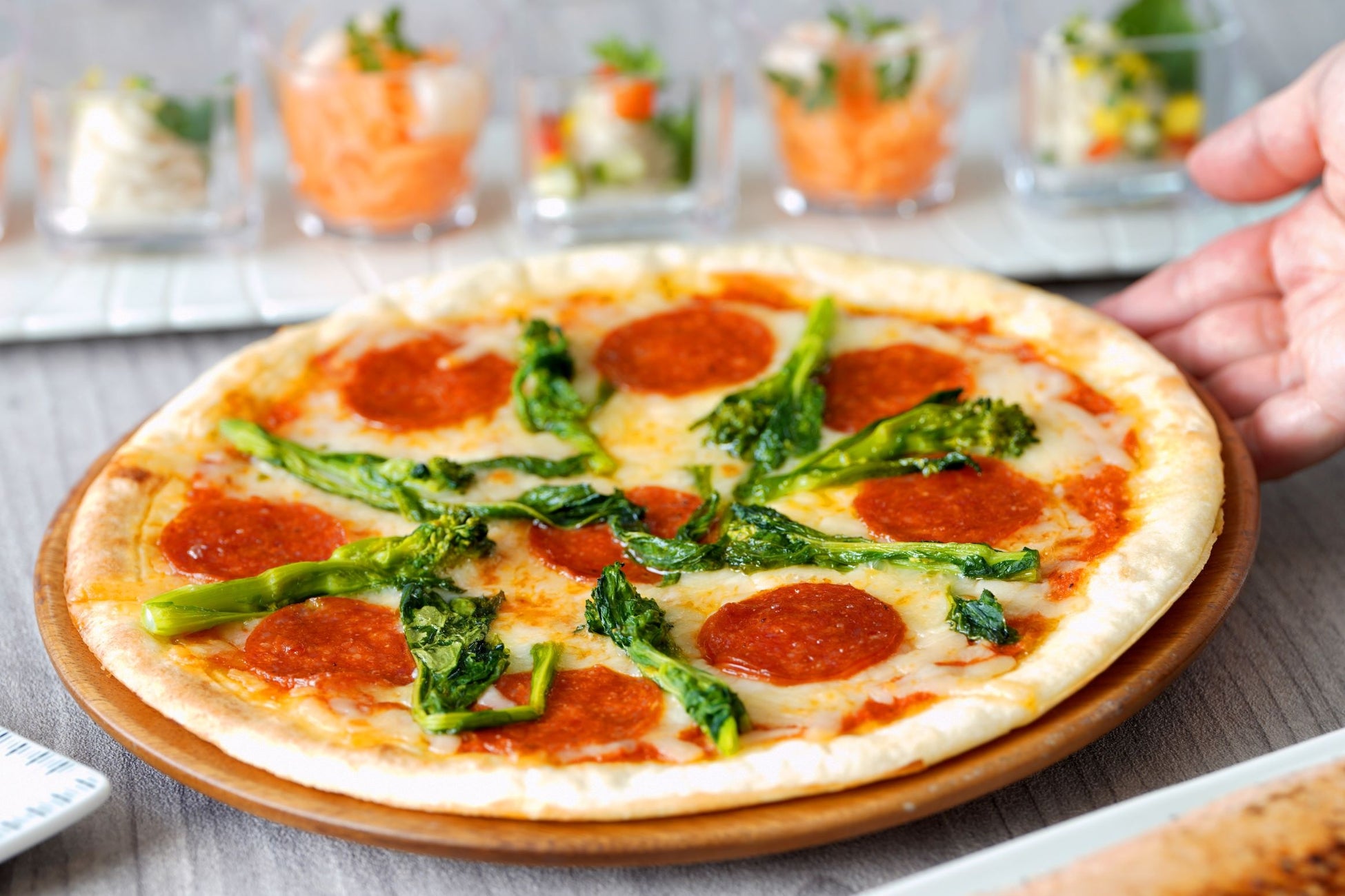 軽やかな食感の薄生地を使用し、その時期に合わせた具材をのせて焼き上げました。お子さまから大人の方まで、どなたにも親しみやすい味わいに仕上げています。ブッフェ台に並ぶ焼きたてを、ぜひお楽しみください。