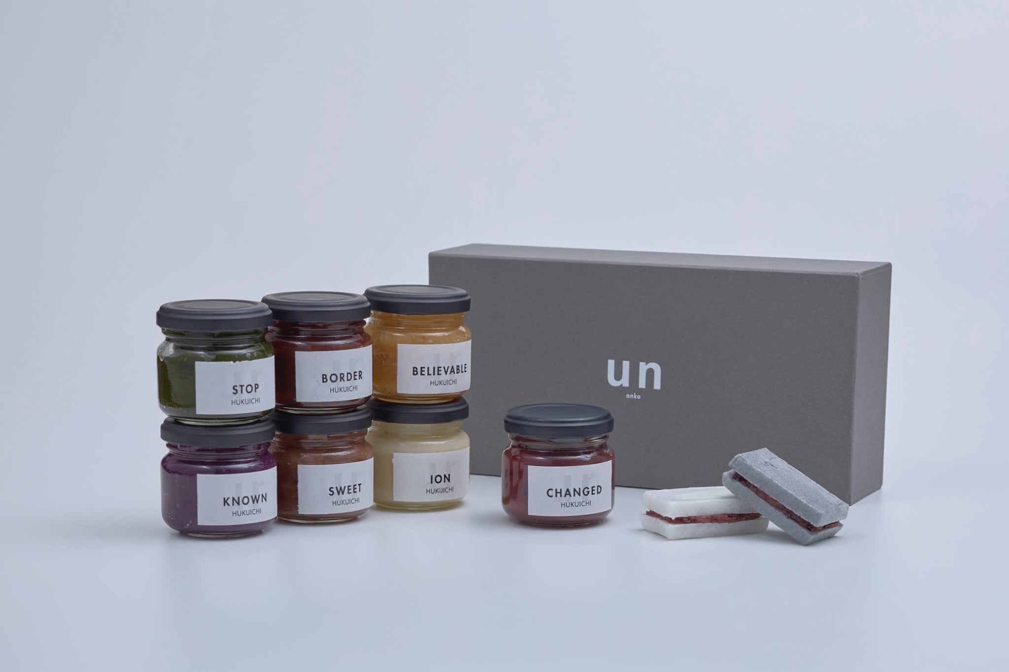 「un」は、あんこの当たり前を見つめ直すための”小さな否定”。これまでのあんこの価値を見つめ直し、「主役として楽しむ」ことを前提に再構築したブランドです。素材と向き合い丁寧に炊き上げたあんこをそのまま味わい、そして組み合わせて楽しむ、新しい体験を提案します。