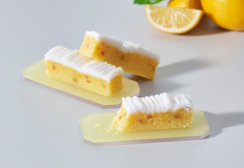 美しいレモン色のケーキには、その甘酸っぱさにぴったりのイタリア栗のマロングラッセをたっぷり焼き込みました。上から白いレモングレーズを繊細にしぼって出来上がる、レモンモンブランケーキです。食べるたび、シャリッとほどけて、ジューシーなレモンが広がる、爽やかな味わい。暑い季節は冷やして「ひんやりスイーツ」としてもどうぞ。