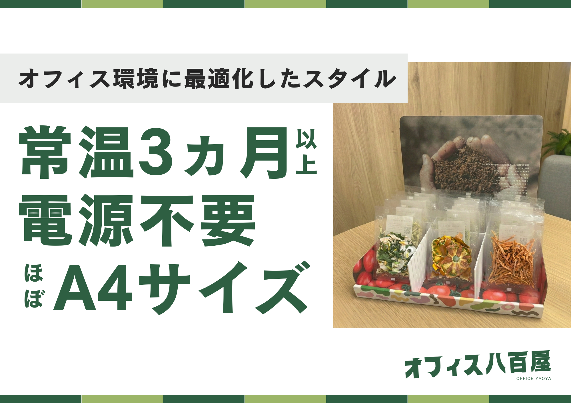「多忙なビジネスパーソンの深刻な野菜不足」を、デスクで手軽に解消。国産野菜100%・砂糖や添加物不使用の低温乾燥野菜で、九条ねぎやトマトなど旬の旨みを凝縮しました。