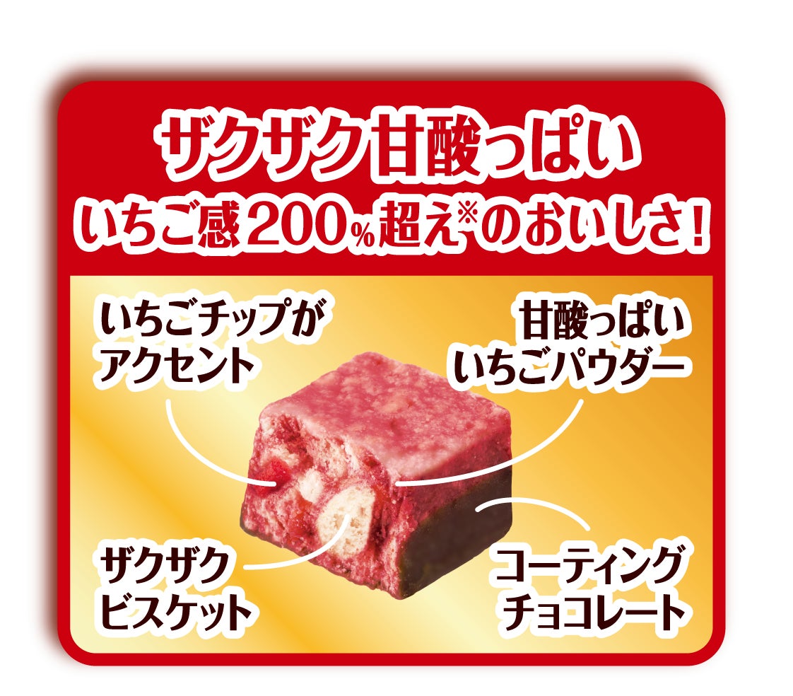 “ひとくちサイズでも圧倒的な満足感がある”という200%超えシリーズの価値を、シリーズ初のフレーバー展開として「いちご」を選択いたしました。