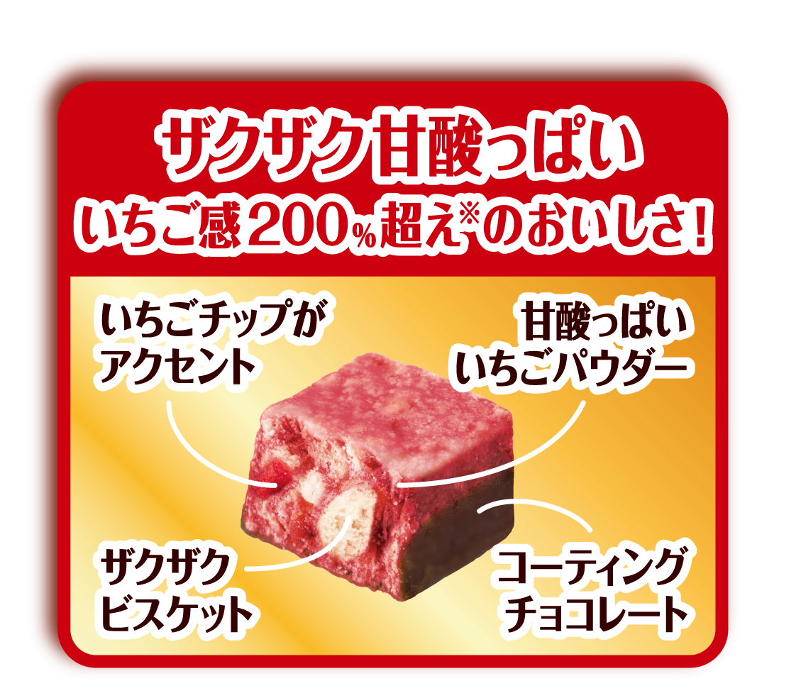 “ひとくちサイズでも圧倒的な満足感がある”という200%超えシリーズの価値を、シリーズ初のフレーバー展開として「いちご」を選択いたしました。