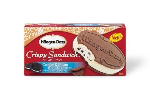 初めてココアウエハースが登場。クッキー&クリームアイスクリームをココア味のウエハースでサンドした商品。