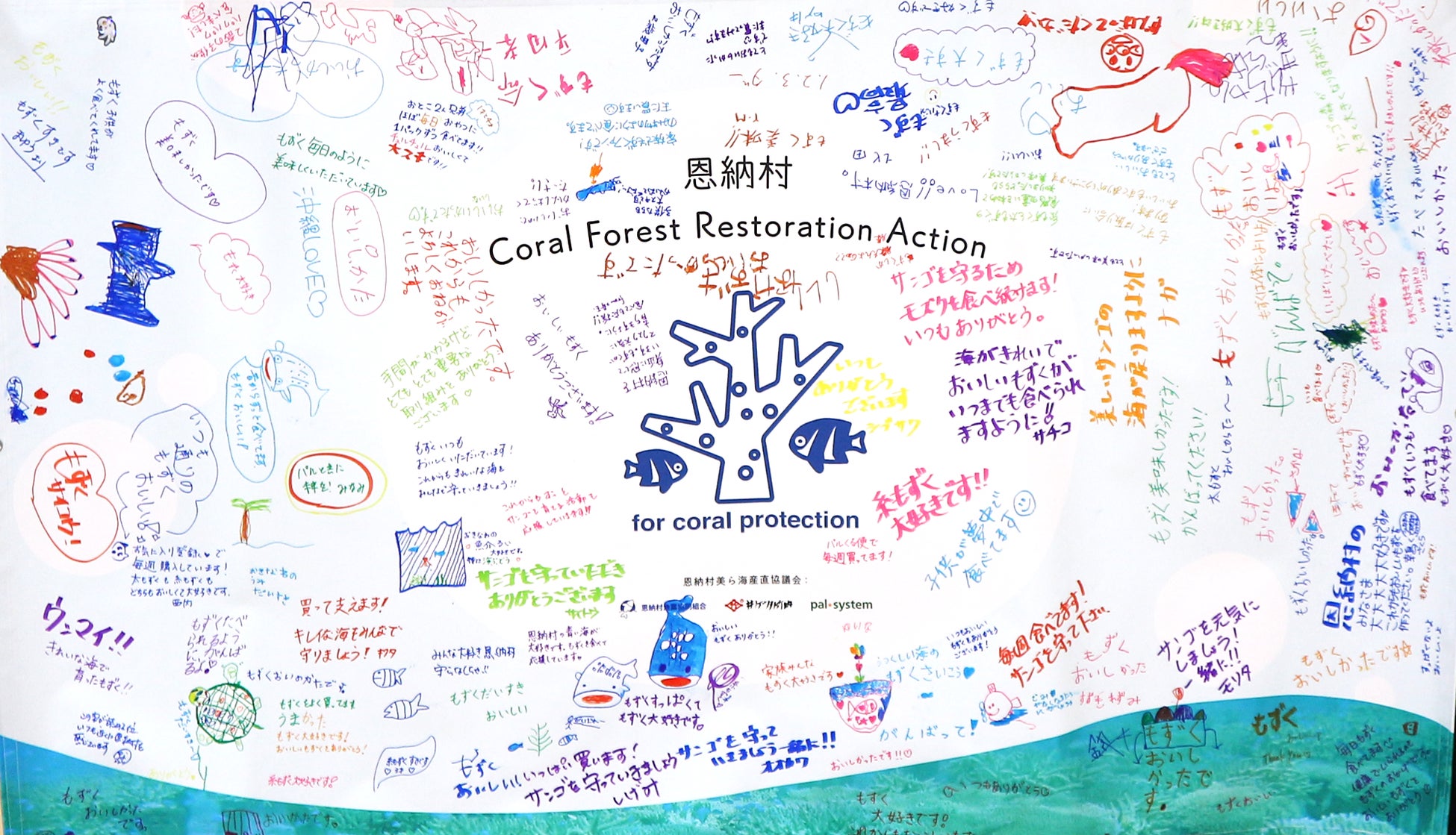 パルシステムと恩納村(長浜善巳村長)、恩納村漁業協同組合(金城治樹組合長)、株式会社井ゲタ竹内(本社:鳥取県境港市、代表:竹内 隆一郎)の4者は、2009年に「恩納村美ら海産直協議会」を設立し、17年にわたり「もずくを食べてサンゴを増やす」里海づくりを続けてきました。