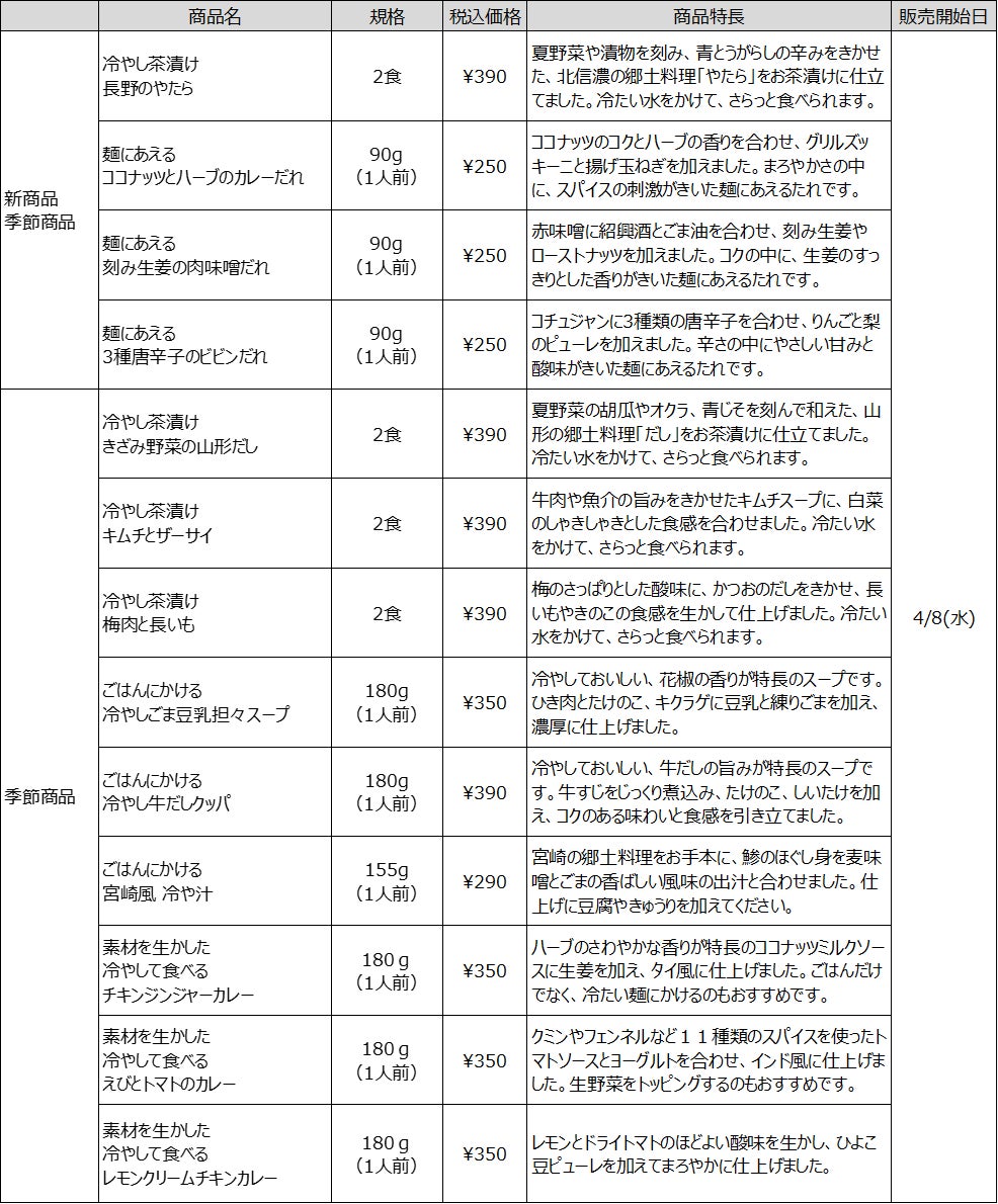 昨年好評いただいた「冷やし茶漬け」シリーズや新商品「麺にあえる」シリーズなどを展開