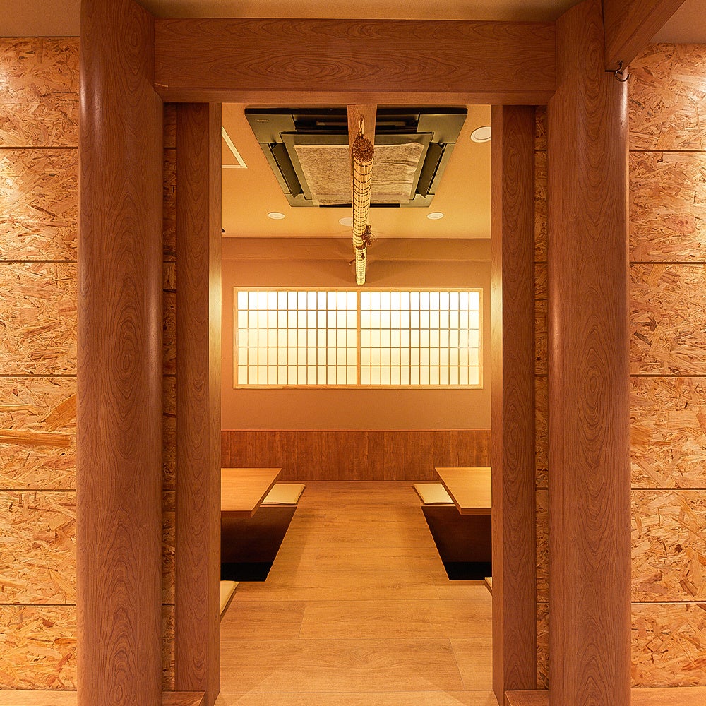 落ち着いた和モダン空間には、プライベートやご宴会に最適なお席をご用意しています。