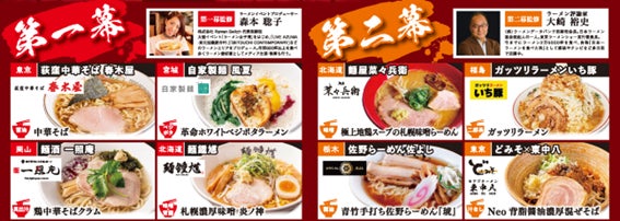 今年は第一幕が「Ramen Switch」ラーメンイベントプロデューサー・森本聡子監修の11店舗。第二幕が「ラーメンデータバンク」ラーメン評論家・大崎裕史監修の10店舗。合計21店舗の人気ラーメンが、あすと長町杜の広場公園に集結!会場でしか食べることのできない絶品ラーメンを提供します。