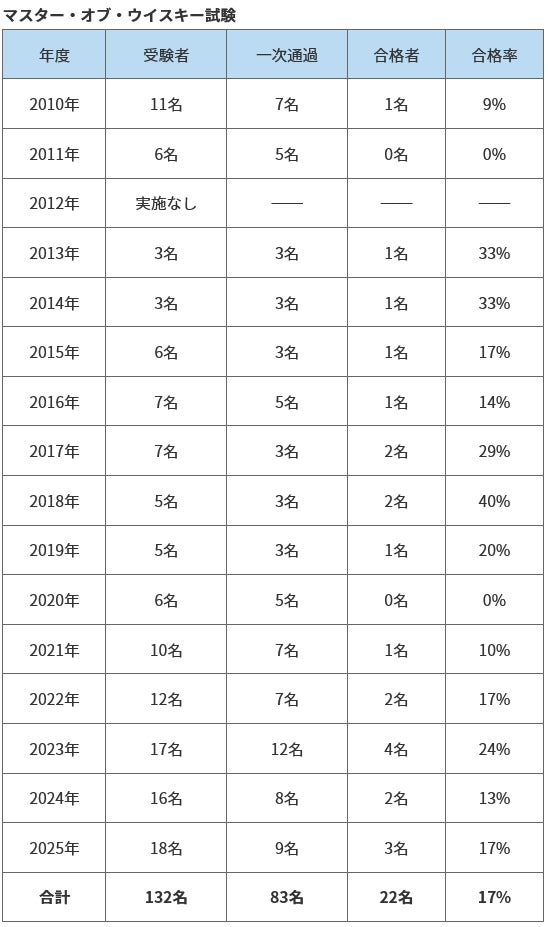 2025年度「マスター・オブ・ウイスキー」合格者