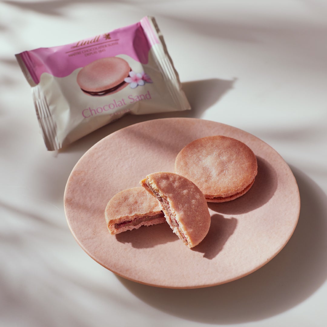 リンツから「ショコラサンド 桜」が登場。ほんのり桜が香るフランボワーズジャムをミルクチョコレートに忍ばせ、桜色のサブレでサンドした、この季節限定のショコラスイーツです。