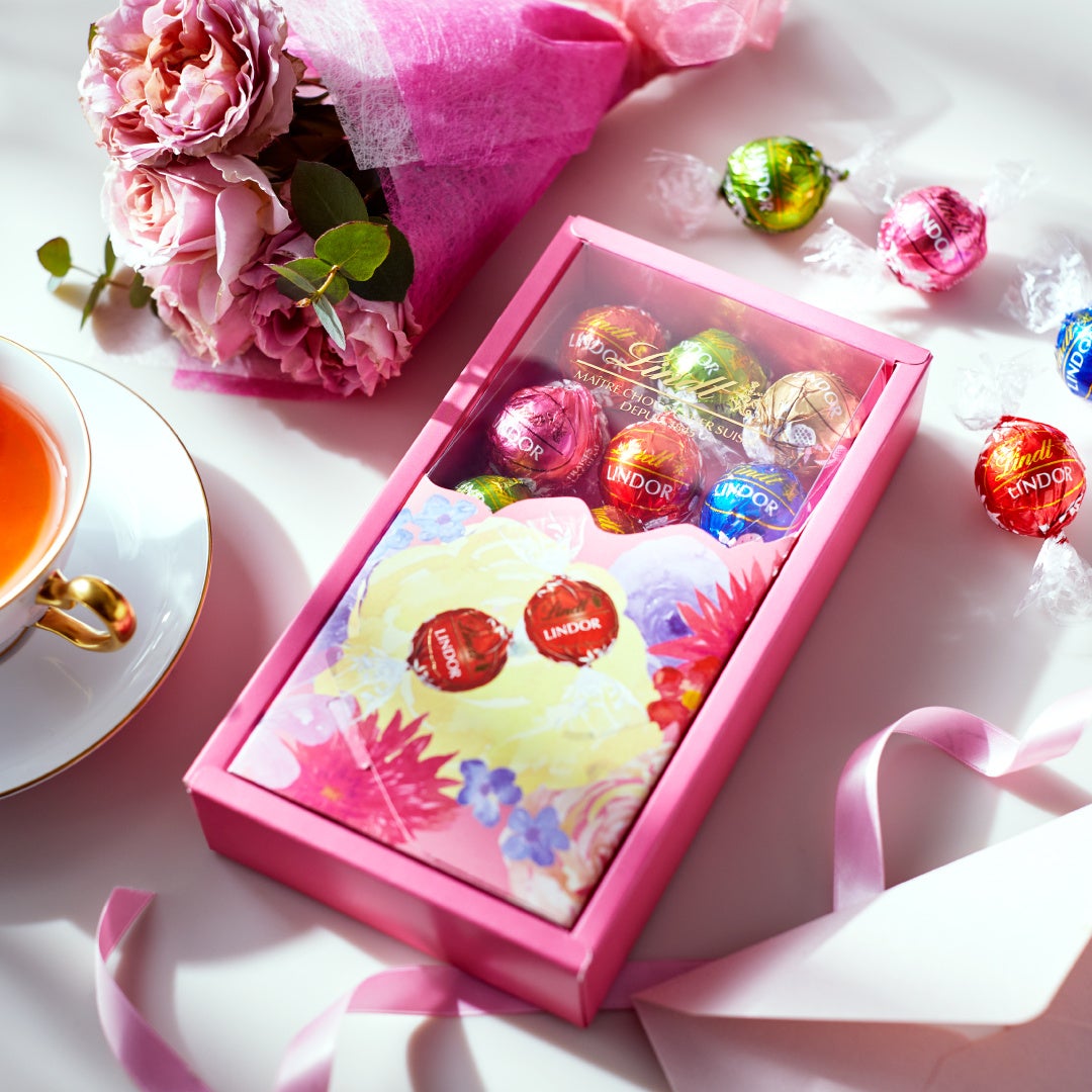 色とりどりのリンドールが花束のように広がる、華やかな20個入りアソートボックス。母の日の特別感を演出する、上品で明るいパッケージデザインに仕上げました。「ミルク」「ホワイト」「ストロベリー&クリーム」など人気フレーバーに加え、季節限定フレーバーもアソート。14個入よりもボリューム感のある仕様で、ご家族でのシェアや特別感を大切にしたいギフトシーンなどに喜ばれる一品です。