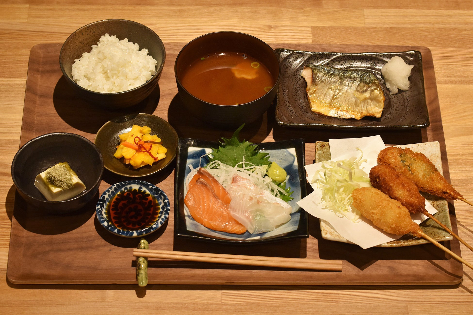ランチタイムには、鮮魚はもちろんお米やサイドメニューにもこだわった定食もご用意。