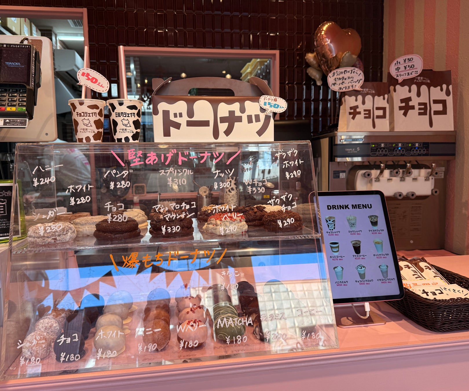 ショーケースには定番から季節限定まで豊富なドーナツが並び、選ぶ楽しさも魅力の一つ
