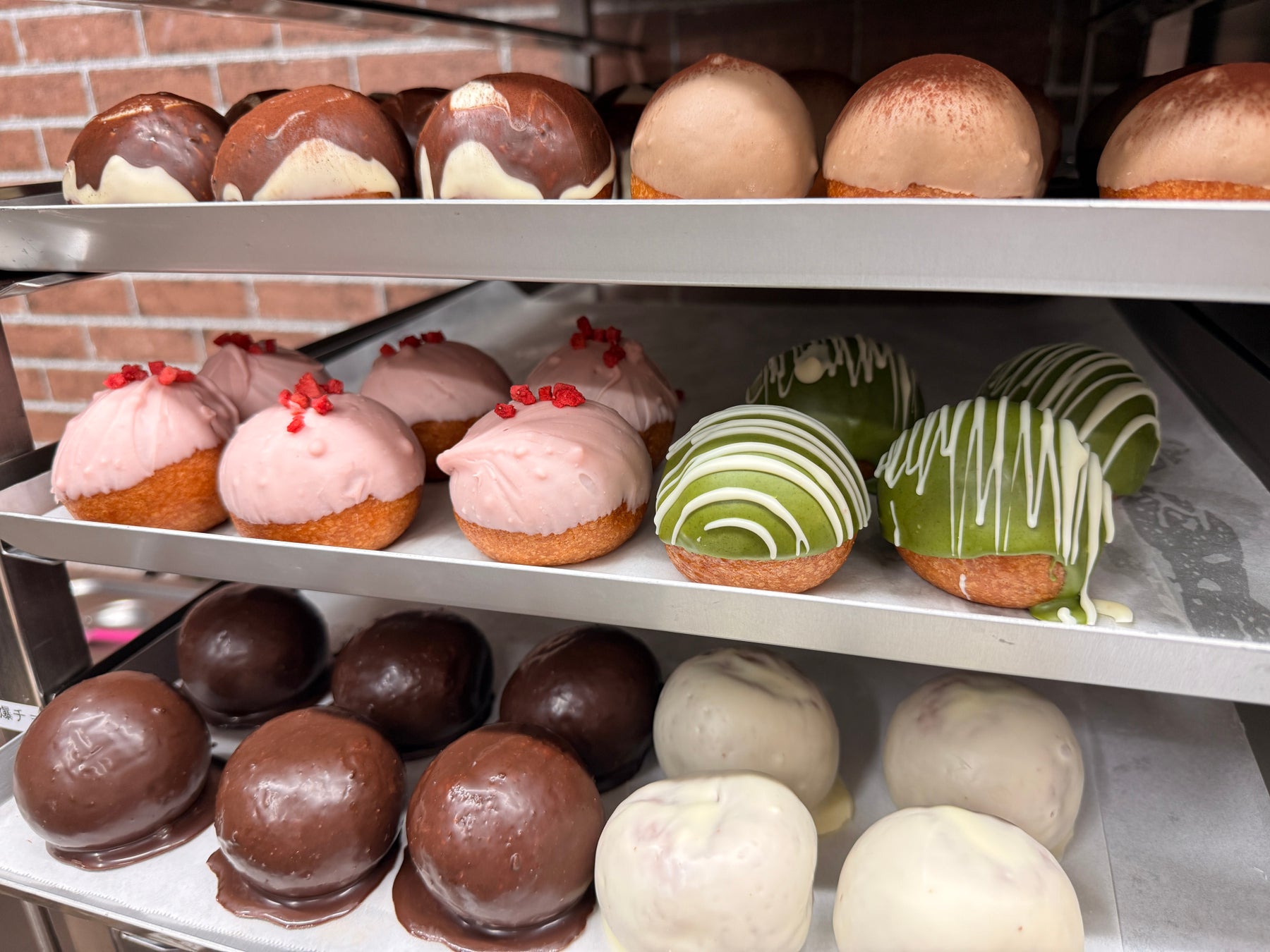 店内で毎朝揚げたドーナツをチョコレートでコーティング。カラフルで可愛らしい見た目も魅力