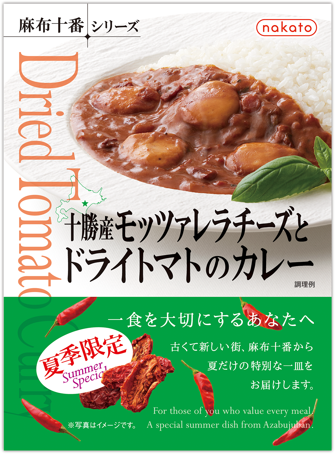 株式会社中島董商店(本社:渋谷区渋谷1-4-13、代表取締役社長:中島周)は、nakatoブランドで展開する「麻布十番シリーズ」より、夏季限定商品として『十勝産モッツァレラチーズとドライトマトのカレー』を、4月15日(水)に発売いたします。
