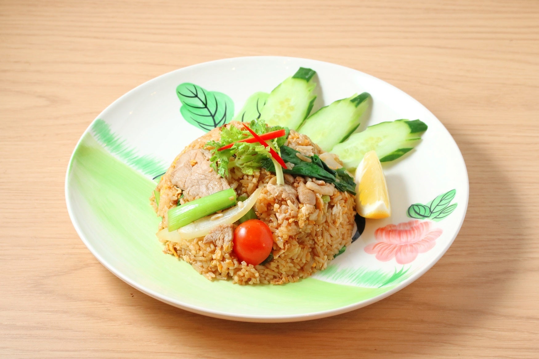 タイの鉄道でお弁当としてよく売られている「カオパット・ロットファイ(鉄道チャーハン)」。見た目が黒いのは、糖蜜が入ったタイの甘口醤油を使っているためです。優しい味わいだから、卓上調味料を使い、自分好みに味変をしながら食べてみてください。カイダーオ(揚げ目玉焼き)のトッピングもおススメです。