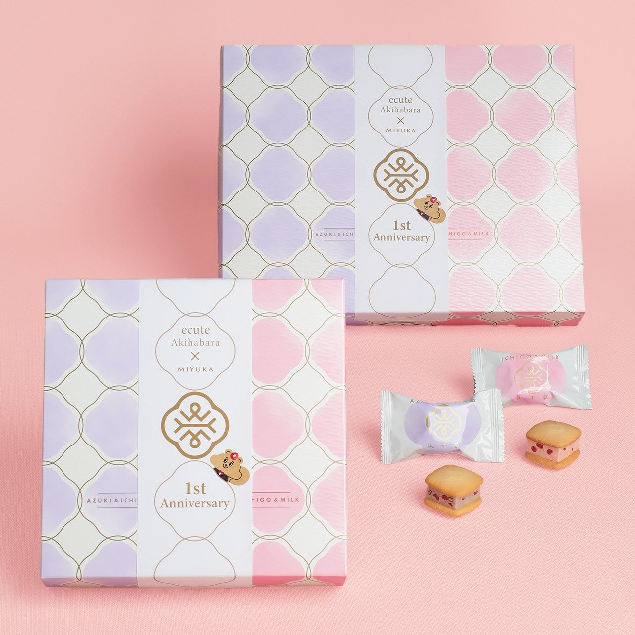 ザクザククッキーに、あずきやいちごのチョコレートをサンド。いちご大福やショートケーキをイメージしており、和の優しい甘さと、洋の甘酸っぱさが楽しめます。エキュート秋葉原店1周年を記念した期間限定パッケージ。