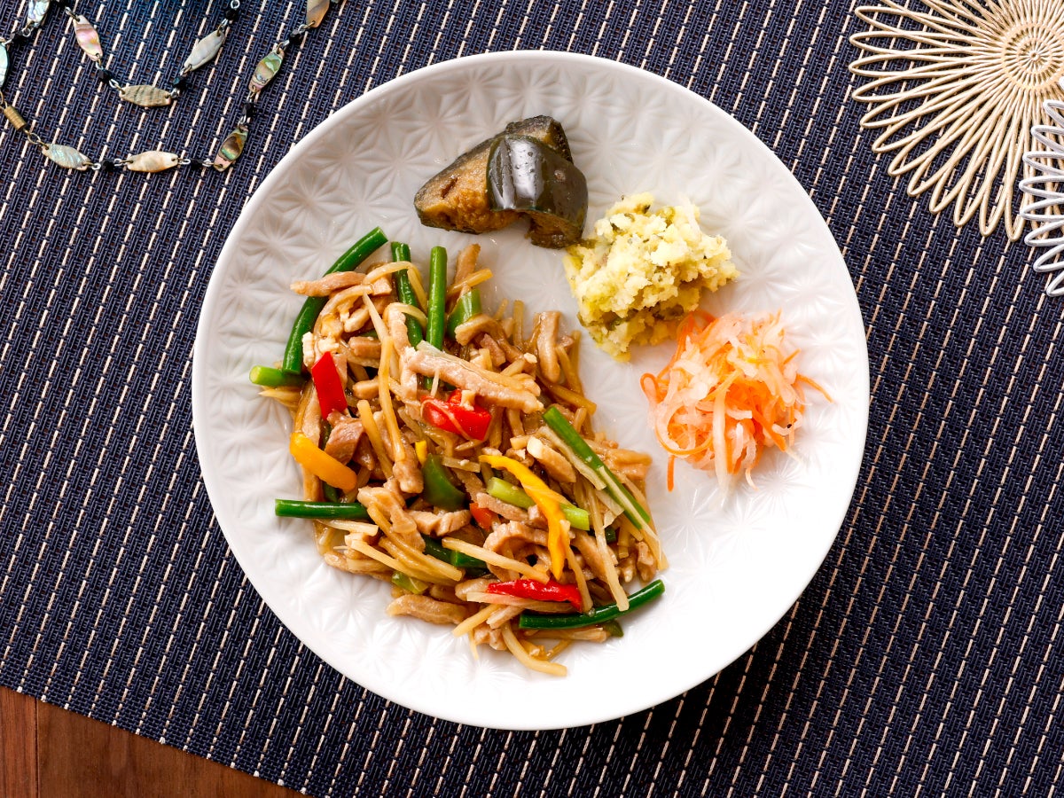 メインとなる豚肉を以前よりもひと回り大きくカットし、噛みしめるほどにお肉本来の旨味をしっかりと感じられるよう工夫しました。お肉の存在感が増したことで、プレート全体の重厚な食べ応えが格段に向上しています。