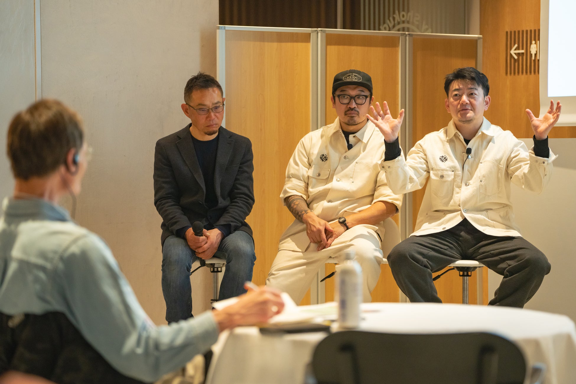 トークセッションにおいては、天ぷら一品に込める考え方について紹介。料理の完成度だけでなく、それを支える生産・輸送・市場(保管)・仲卸・飲食店・消費に至るまでの流れ全体によって価値が成立する点に触れ、テンキが重視する視点について説明しました。