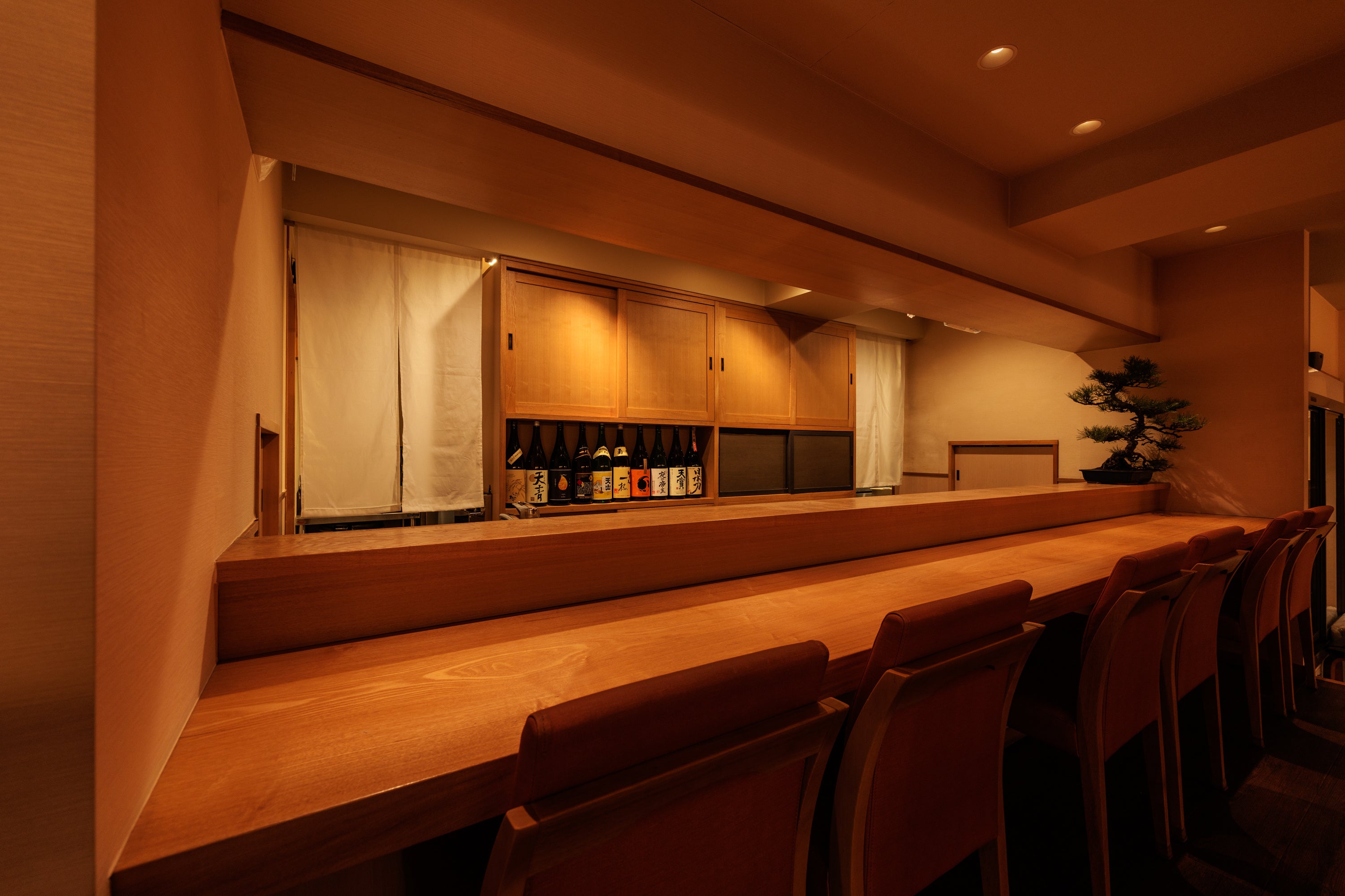 扉の先に広がるのは、凛と整えられた個室中心の上質な空間。店内の多くが個室で構成されており、会食や接待、デートなど、周囲を気にせずゆっくりと過ごせる空間となっています。