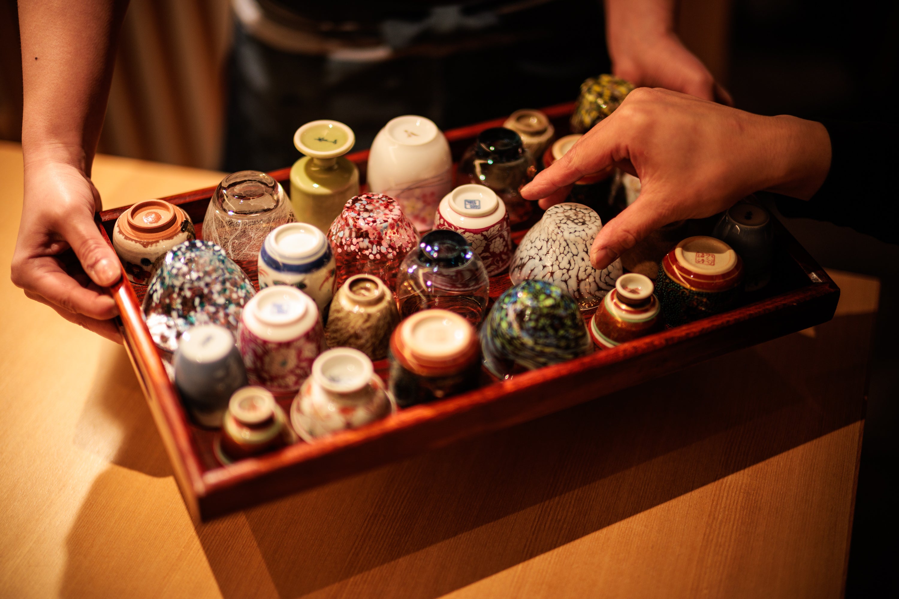 木の温もりを感じるカウンター席では、お一人様でも気兼ねなく利用可能。職人の手仕事を目の前で眺めながら贅沢な時間を過ごせます。