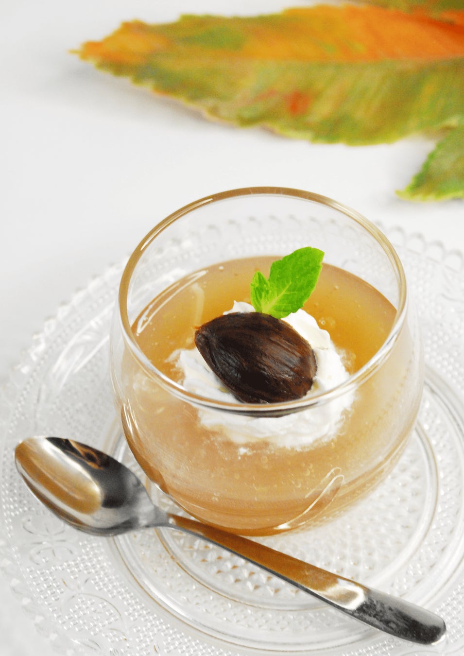 「和栗ソース(国産栗)」でひんやりゼリーを作りました。