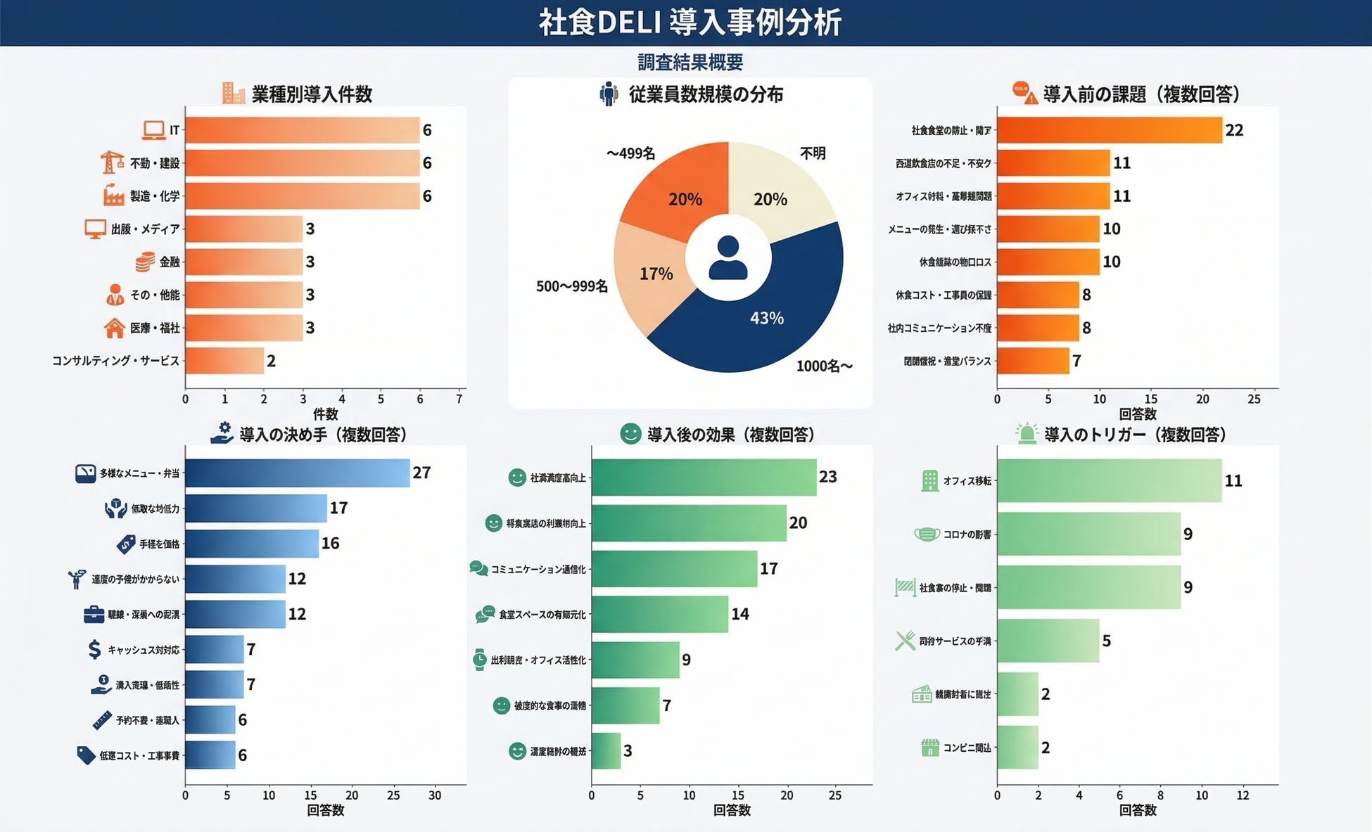 近年、都心部の再開発に伴うオフィス移転や、リモートワークと出社を組み合わせたハイブリッドワークの定着により、オフィスのあり方が大きく変化しています。それに伴い、社員の「ランチ環境」にも新たな課題が生まれています。本調査では、社食DELIを導入した企業のうち、インタビューを受けてくださった35社の抱えていた課題を分析し、現代のオフィスランチの実態を浮き彫りにしました。