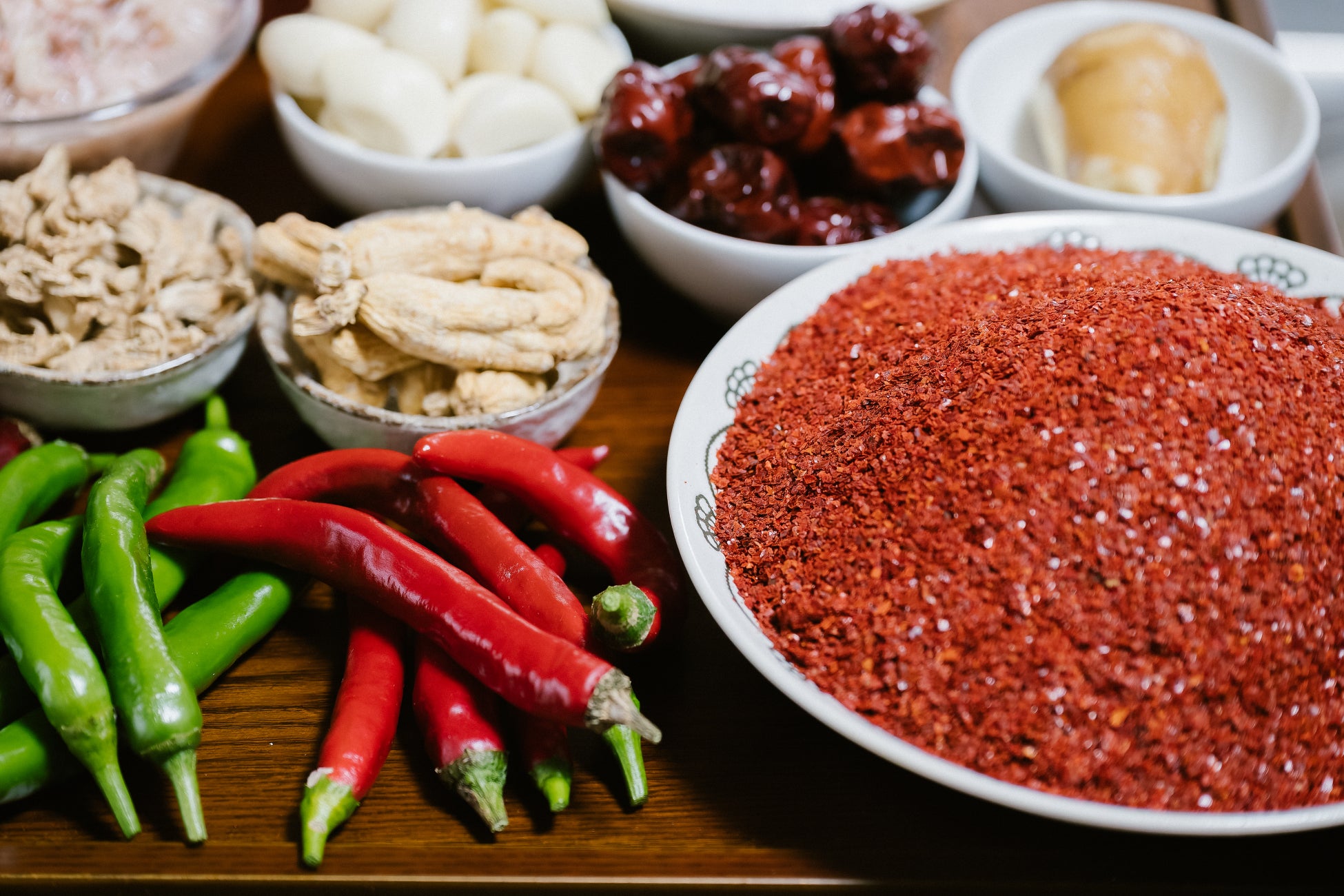 また、キムチの旨味を引き出すために、唐辛子や魚介の発酵調味料・野菜などの原材料をしっかりと使用することで、添加物を使わなくても深い旨味のあるキムチを作る方法を学びます。素材本来の力を活かしたキムチづくりは、韓国の伝統的な家庭の味でもあります。
