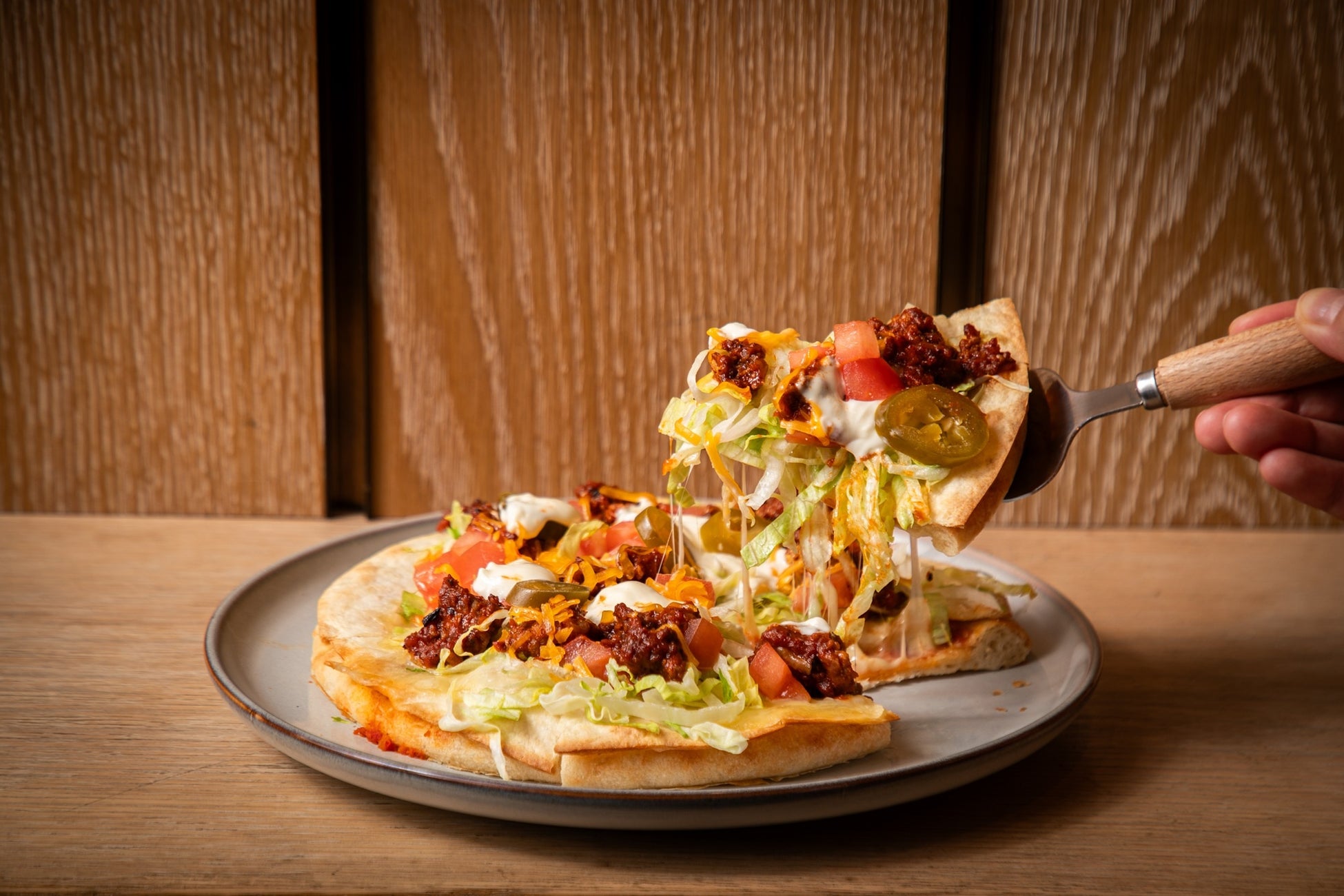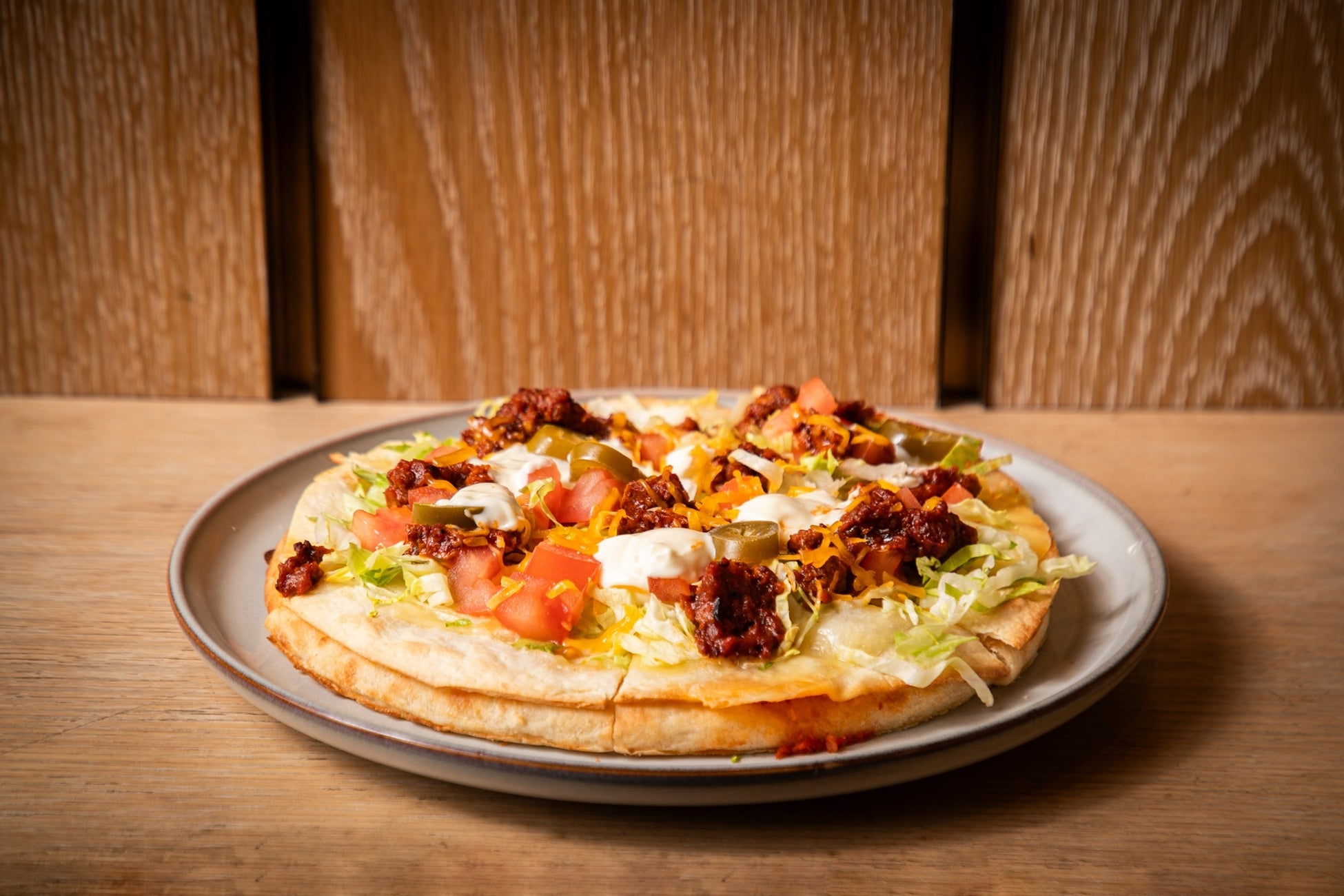 メキシカンの代表格“タコス”と、スタジアムで人気のピザを掛け合わせた新感覚の一品。