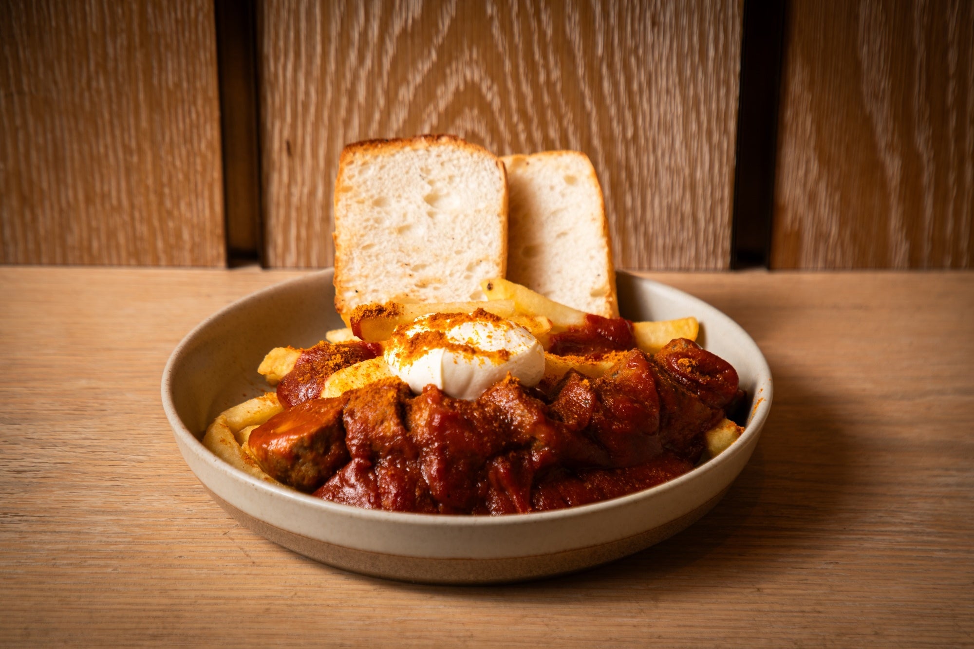 ドイツの定番スタジアムグルメ「カリーヴルスト」をPUBLICスタイルにアレンジ。