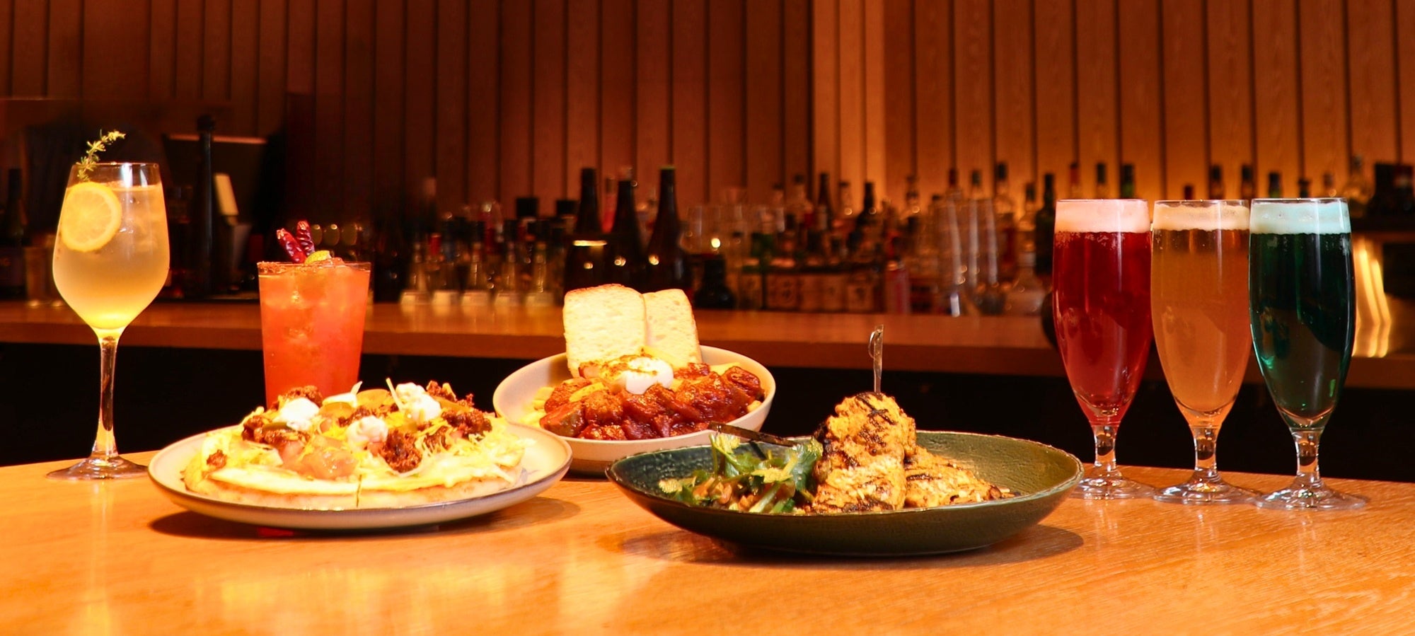 フードメニューでは、アメリカのスタジアムスナックをイメージした「ライトミールバスケット」や、ドイツの定番観戦グルメをアレンジした「PUBLIC’Sカリーヴルスト」、タコスとピザを融合させた「Mexicanタコスピッツァ」など各国の魅力を一皿に凝縮したラインナップをご用意。