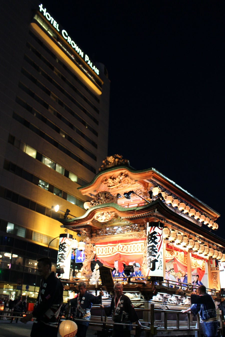 夕方から夜にかけて当ホテル前の車道を何台もの御殿屋台が引きまわされます。