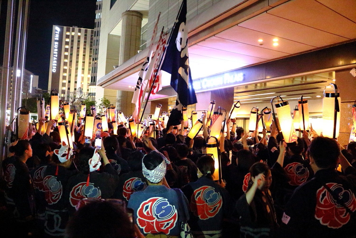 夕方から夜にかけて当ホテル前の車道を何台もの御殿屋台が引きまわされます。