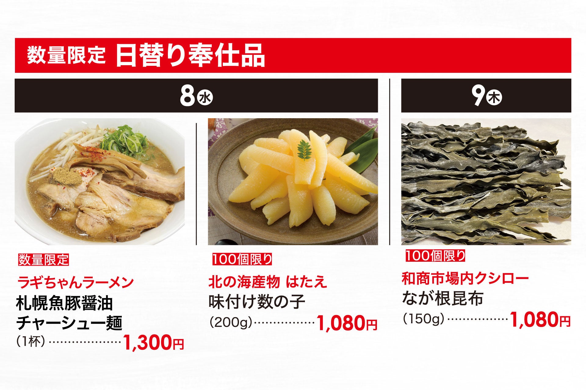 数量限定 日替り奉仕品