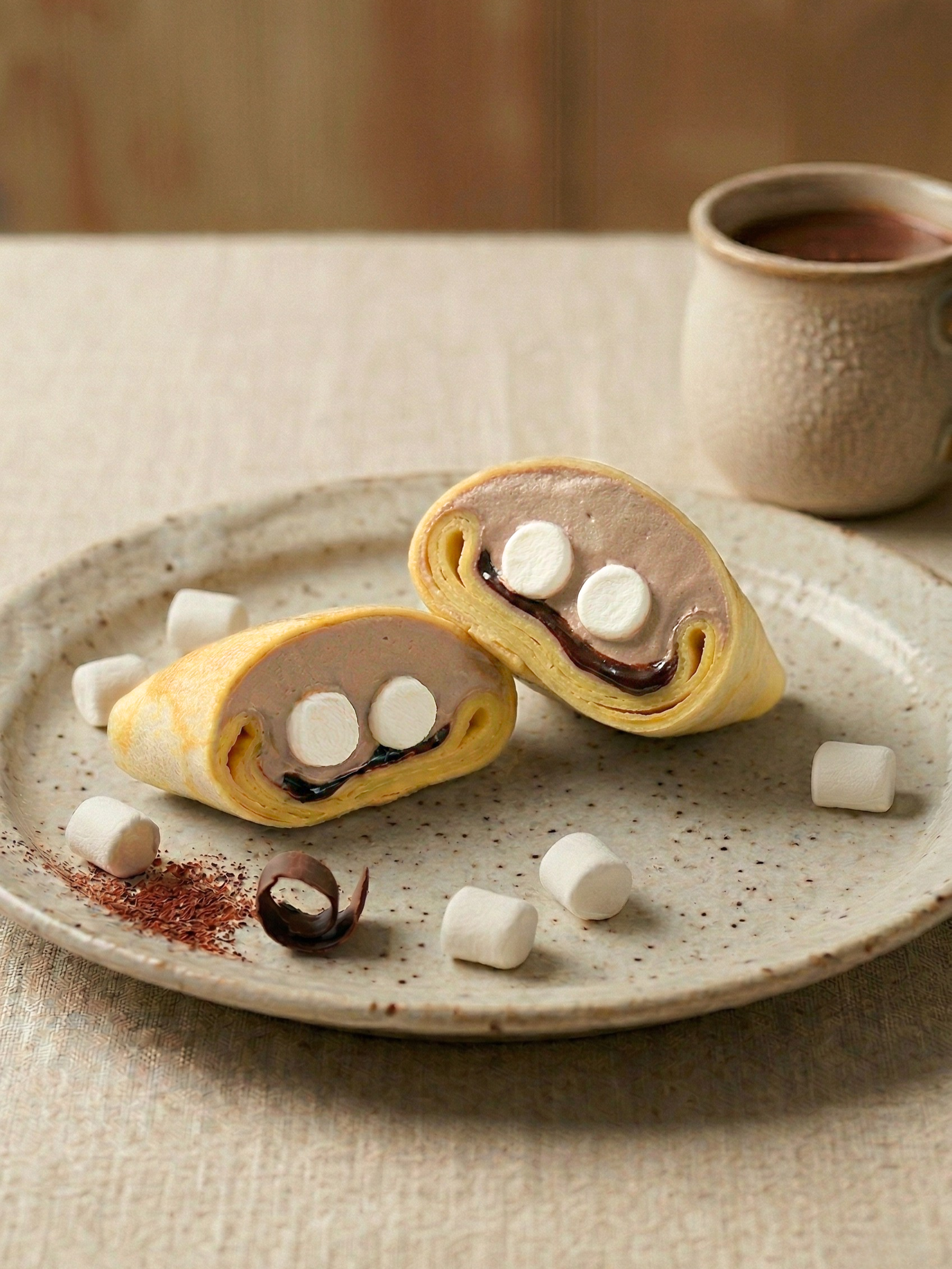 チョコレートクリームで包んだマシュマロの食感が楽しめるクレープです。