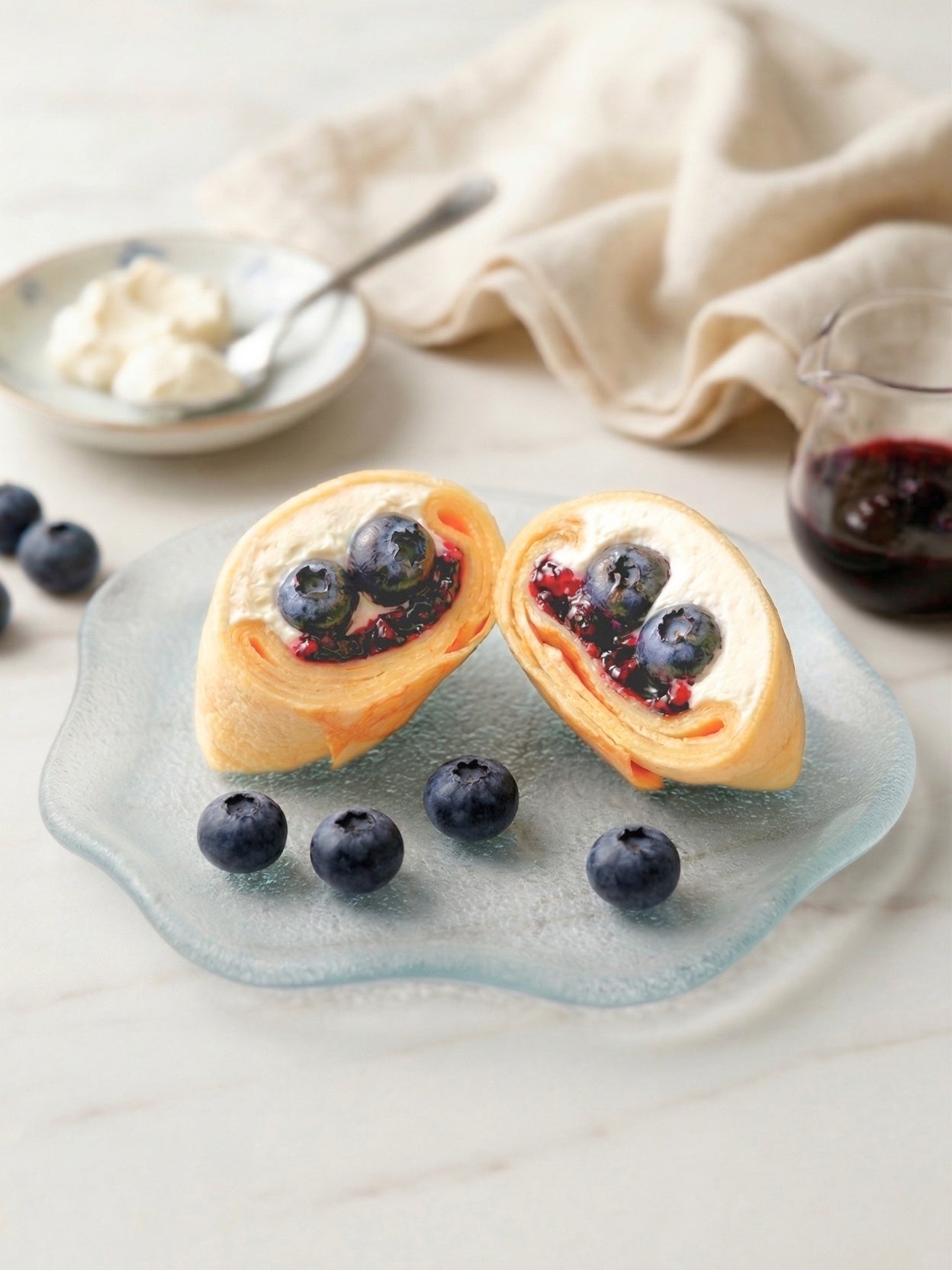 濃厚なクリームチーズの中にブルーベリーをトッピングしたクセになるクレープです。