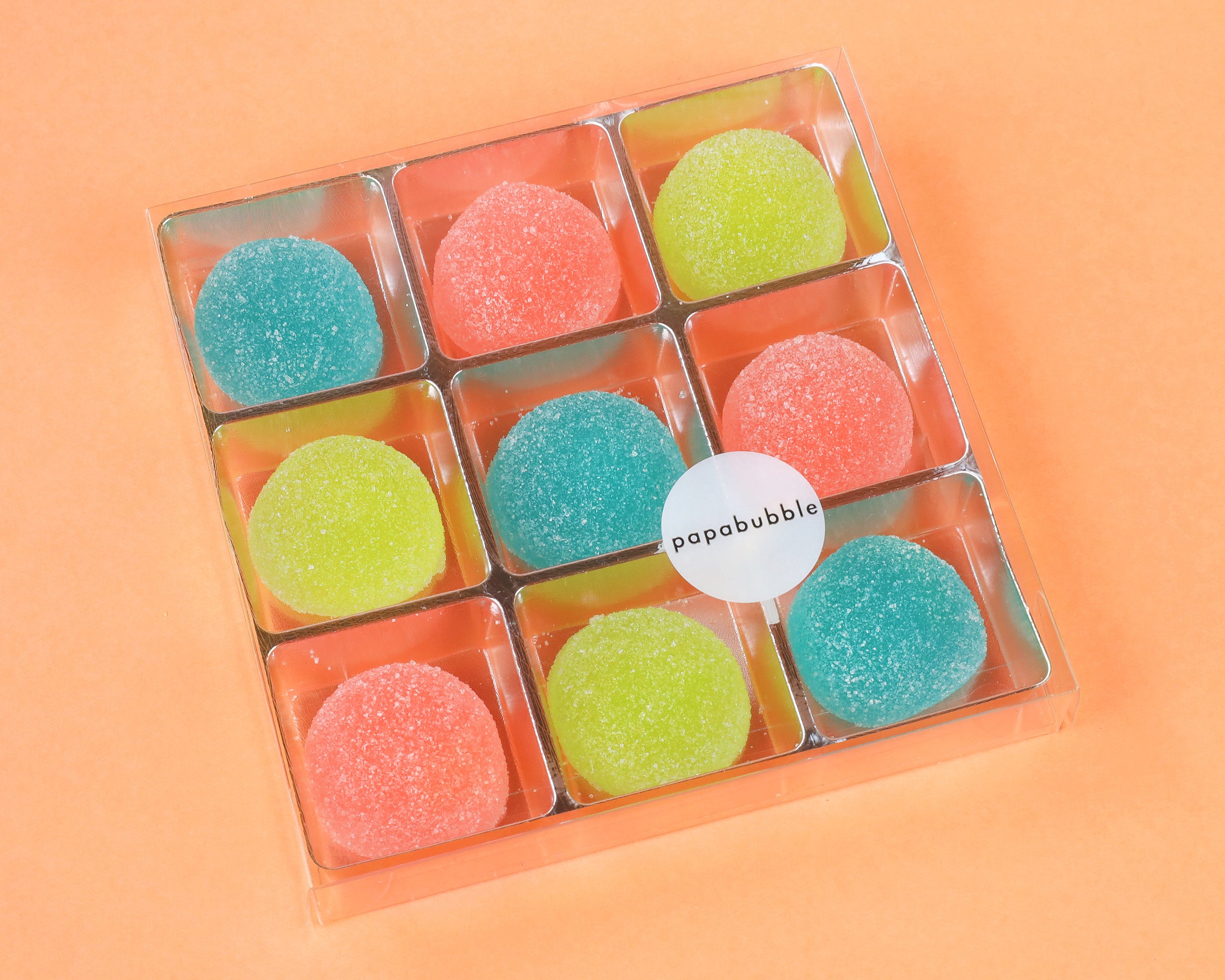 最大のこだわりは、職人が限界まで挑んだ「重曹」の配合量です。空気をたっぷり含ませたサクサクのキャンディを噛むと、口の中で一気にしゅわしゅわとした刺激が広がります。ぷりっとしたフォルムと、キラキラとしたカラフルな見た目は、自分へのご褒美にはもちろん、ギフトにもぴったりな一足早く初夏を感じる爽やかさです。