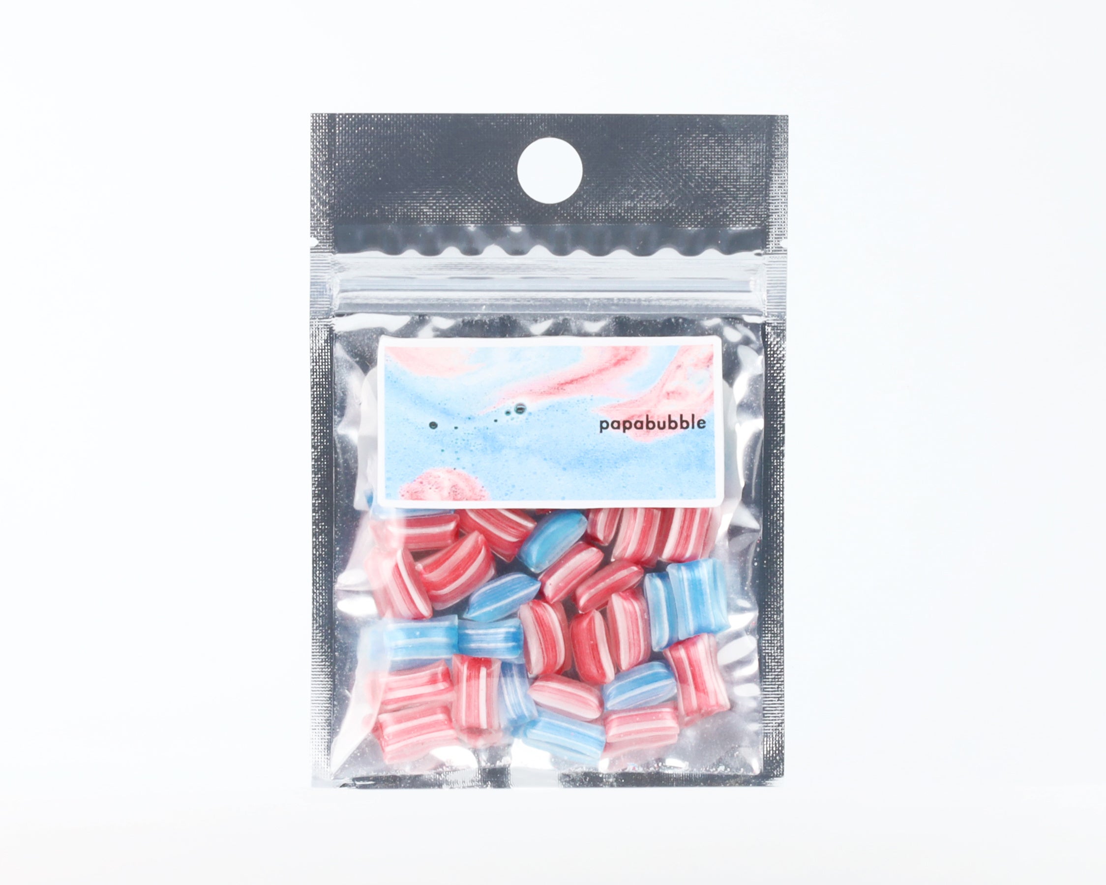 口の中でパチパチと弾けるキャンディの刺激も特長のひとつ。ソーダのしゅわしゅわとした感覚を再現した、遊び心のあるコットンキャンディです。