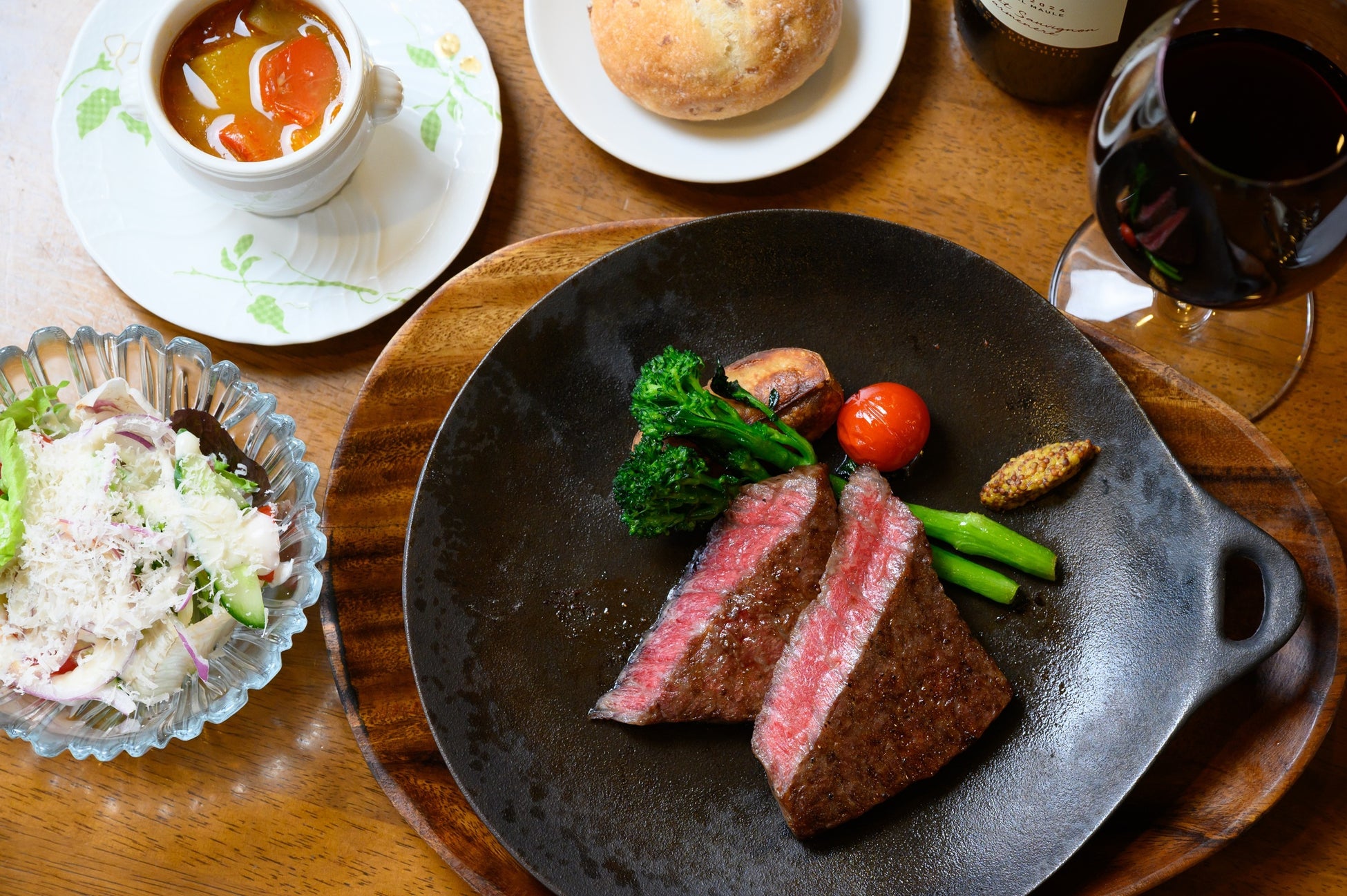 うかいグループ監修の「黒毛和牛もも肉のグリルセット(4,900円)」や、焼きたての「オリジナルPIZZA マルゲリータ(1,800円)」など、美食と共にゆったりとした時間をお過ごしいただけます。