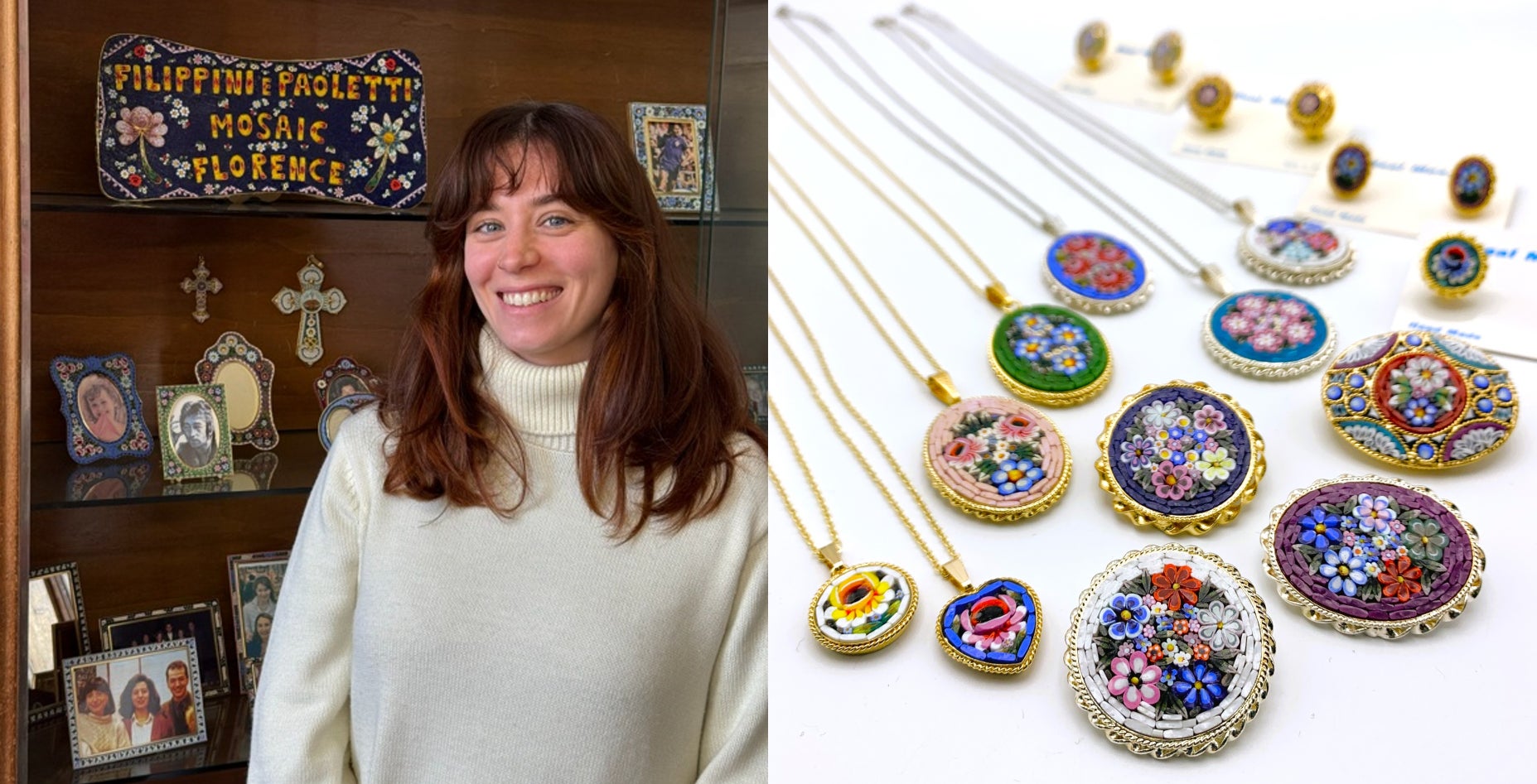 目玉となるのは、イタリア・フィレンツェの名門工房「フィリピーニ&パオレッティ社」の四代目承継者、クラウディア・サッリ氏によるビザンチンモザイク・アクセサリーの制作実演販売です。彼女にとって初の海外デモンストレーションとなる本イベントでは、緻密な職人技を間近で体感いただけます。