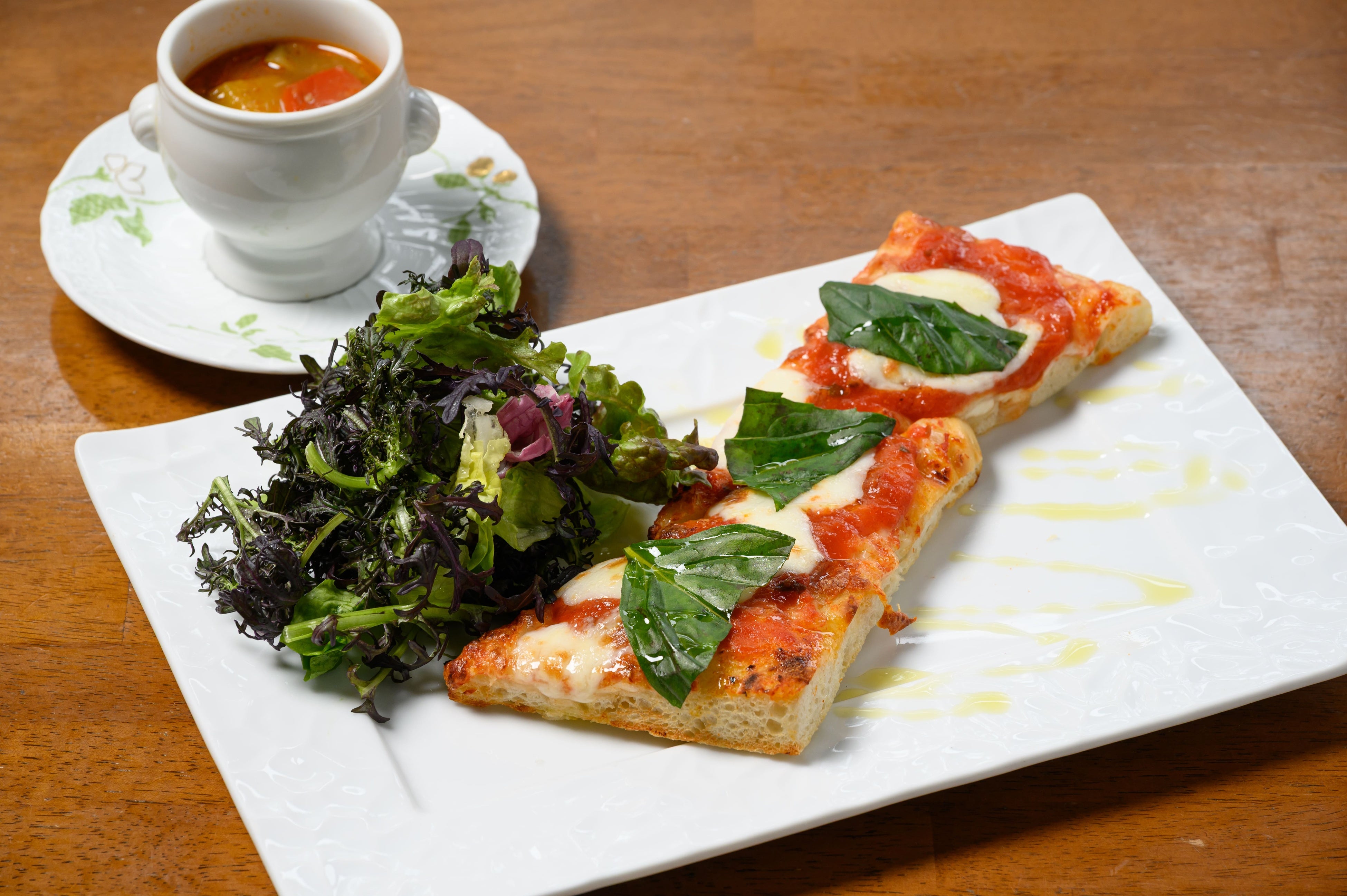 うかいグループ監修の「黒毛和牛もも肉のグリルセット(4,900円)」や、焼きたての「オリジナルPIZZA マルゲリータ(1,800円)」など、美食と共にゆったりとした時間をお過ごしいただけます。