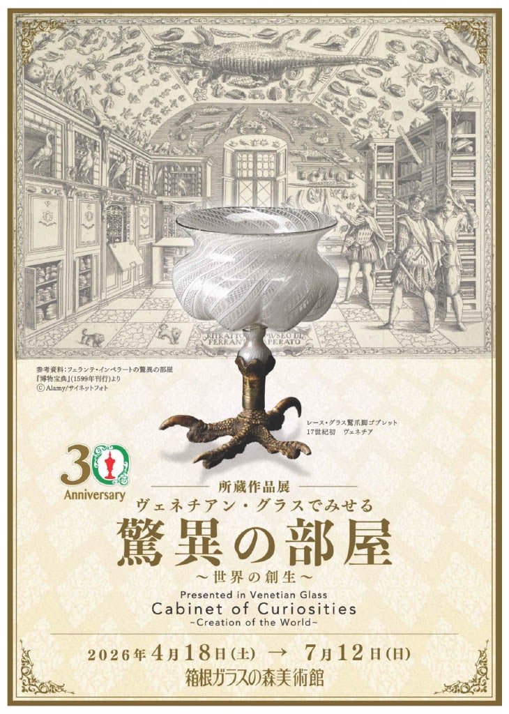 また、ゴールデンウィークに先駆け、4月18日(土)からは所蔵作品展「ヴェネチアン・グラスでみせる驚異の部屋」が開幕します。15世紀後半、王侯貴族を熱狂させた「驚異の部屋」の世界観を、現代の美術館のルーツとして紐解きます。